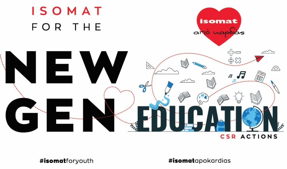 Ένας σημαντικός πυλώνας εταιρικής κοινωνικής ευθύνης για την ISOMAT είναι η επένδυση στη γνώση, την επιστημονικότητα και τη δύναμη της νέας γενιάς. Μέσω του προγράμματος «ISOMAT For The New Gen», η εταιρεία συγκεντρώνει όλες τις δράσεις που υλοποιεί για τη στήριξη των νέων κάτω από μία κοινή ομπρέλα, επενδύοντας σε αυτούς για ένα καλύτερο μέλλον.