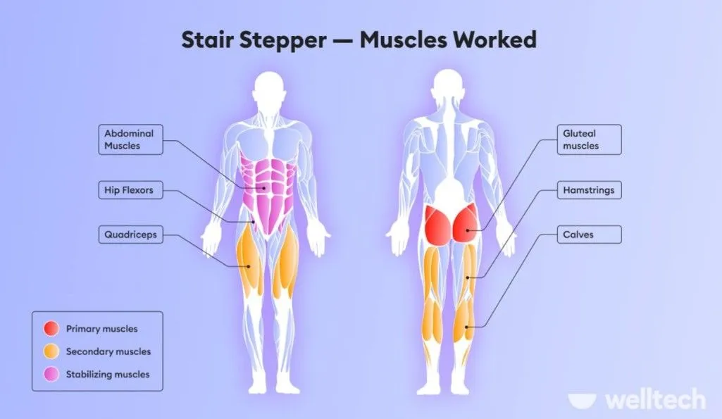 Κατά το Health έρευνες δείχνουν ότι η συνεχής άνοδος σκαλοπατιών απαιτεί πάνω από εννέα φορές την ενέργεια που απαιτείται για να καθόμαστε και πως όπως ενεργοποιείται η κάθετη άρση βαρών (όλο μας το σώμα εξαρτάται από τους μυς των ποδιών μας), αυξάνοντας τις ανάγκες σε οξυγόνο κατά 200%, σε σχέση με το περπάτημα σε επίπεδη θέση.