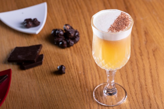 Όταν τον ρωτήσαμε γιατί έφτασε να δημιουργήσει το cocktail που θα δείτε παρακάτω και να το συνδυάσει με σοκολάτα, ένωσε όλα τα κομμάτια του παζλ. “Επιλέγω μανταρίνι, πικραμύγδαλο και bitter σοκολάτα, τρία υλικά που ταιριάζουν απόλυτα στο γευστικό προφίλ του METAXA 12 Stars. Χρησιμοποιώ το aquafaba (είναι μία vegan εκδοχή αντί να χρησιμοποιήσουμε ασπράδι αυγού) για να δώσω πιο πλούσιο σώμα και γευστικό χαρακτήρα στο cocktail αυτό. Ένα ιδανικό pairing γι’ αυτό το cocktail είναι οι ξηροί καρποί, επικαλυμμένοι με σοκολάτα”.