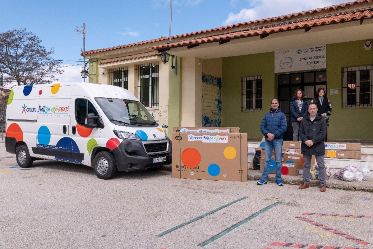 Παράλληλα, το van του προγράμματος «ΜΑΖΙ ΓΙΑ ΚΑΛΟ ΣΚΟΠΟ» επισκέφθηκε το 3ο Δημοτικό Σχολείο Αρτάκης, το 5ο Δημοτικό Σχολείο Νέας Μαγνησίας Λαμίας, το 1ο Δημοτικό Σχολείο Μοσχάτου και το Δημοτικό Σχολείο Σοφικού, παραδίδοντας σχολικό και τεχνολογικό εξοπλισμό (laptops, υπολογιστές, βιντεοπροβολείς, χάρτες τοίχου), αθλητικό υλικό, μουσικά όργανα, καθώς και απινιδωτές.
