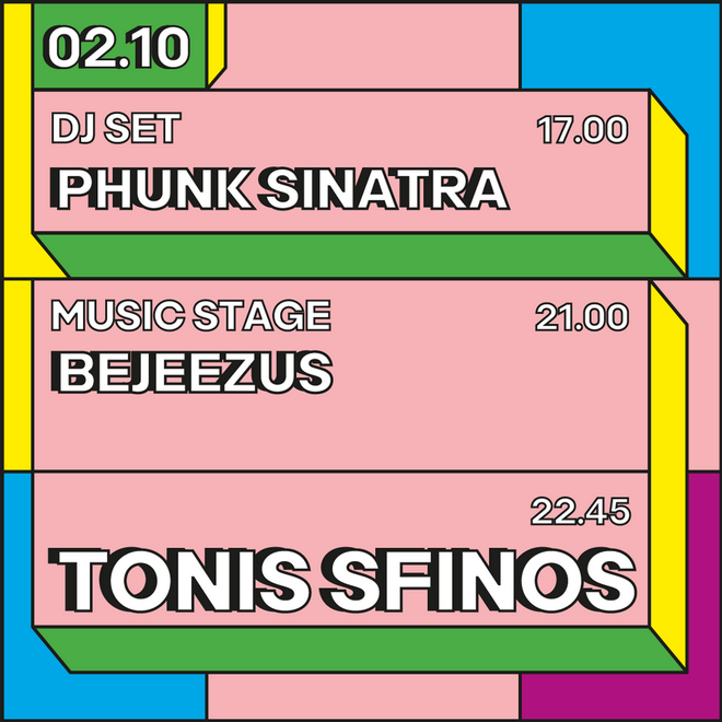 Την επομένη, Σάββατο 2 Οκτωβρίου, η βραδιά -πάντα συνοδεία λαχταριστών μπέργκερ- θα ανοίξει με dj set του Phunk Sinatra. Στις 9.00 το βράδυ θα ανέβουν στη σκηνή οι Bejeezus, ενώ στις 10.45 θα ακολουθήσει ο ένας και μοναδικός Tonis Sfinos.
