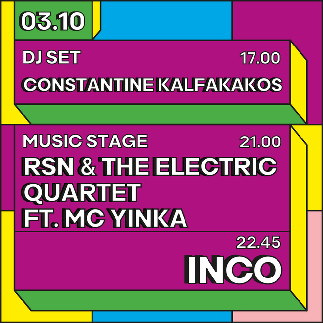 Το πρώτο μπεργκερο-τριήμερο ολοκληρώνεται την Κυριακή 3 Οκτωβρίου με dj set από τον Constantine Kalfakakos. Λίγο αργότερα, στο μουσικό stage θα ανεβούν οι RSN & THE Electric Quartet, παρέα με τον Mc Yinka, ενώ η βραδιά θα τελειώσει με τους νεανικούς και γεμάτη ενέργεια INCO.