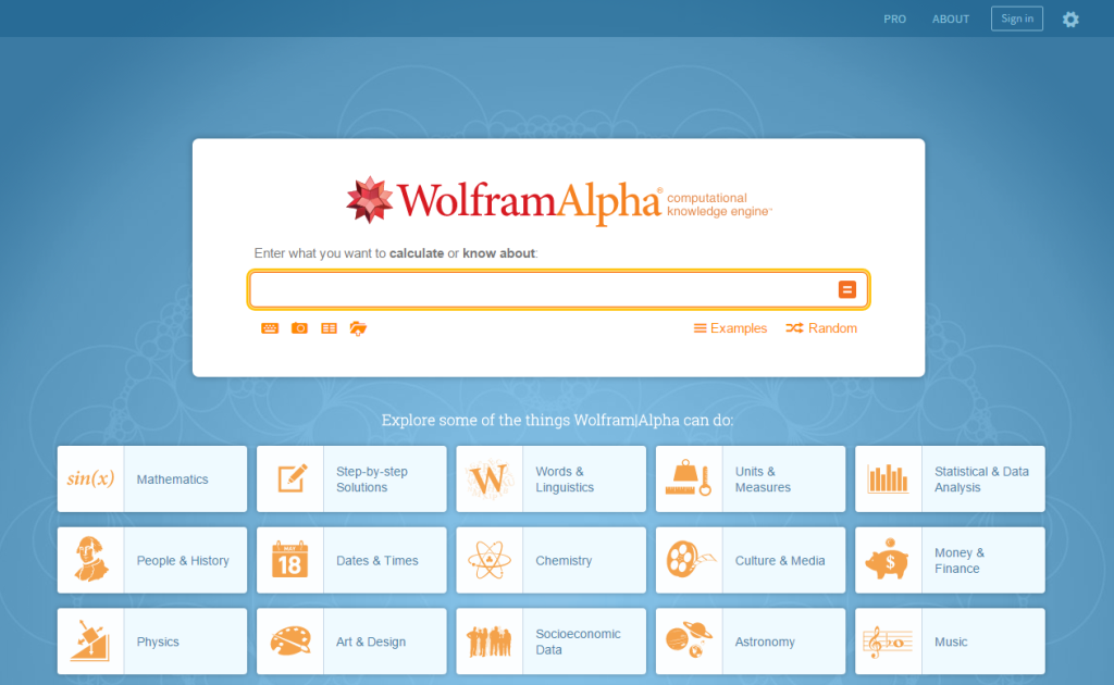 Πολλές φορές εκείνο που έχει σημασία δεν είναι η πιο δημοφιλής αναζήτηση, αλλά η πιο έγκυρη και αξιόπιστη. Σε αυτό το πεδίο, το WolframAlpha υπόσχεται να βοηθήσει κάθε σπουδαστή (θα ήταν ιδιαίτερα χρηστικό και για μαθητές, με το μειονέκτημα πως δεν έχει ακόμη ελληνική έκδοση) προσφέροντας δεδομένα και πληροφορίες σε μια σειρά από θέματα, στοχεύοντας μόνο σε επιμελημένες πηγές πληροφόρησης και όχι γενικά και αόριστα στο διαδίκτυο.