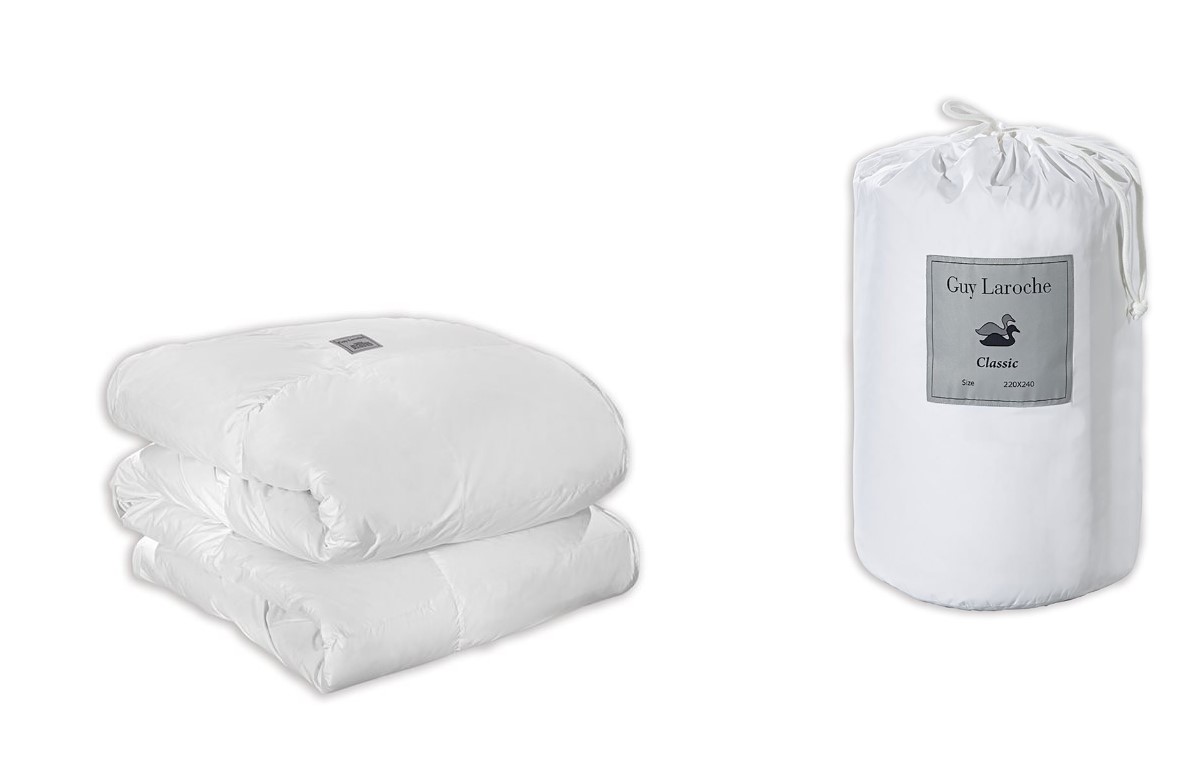 Το υπέρδιπλο πουπουλένιο πάπλωμα Guy Laroche υπέρδιπλο πάπλωμα ” New Classic” 220 x 240 cm με βαμβακερή θήκη φύλαξης. 100% πούπουλο (εσωτερικό) και 100% βαμβάκι (εξωτερικό)