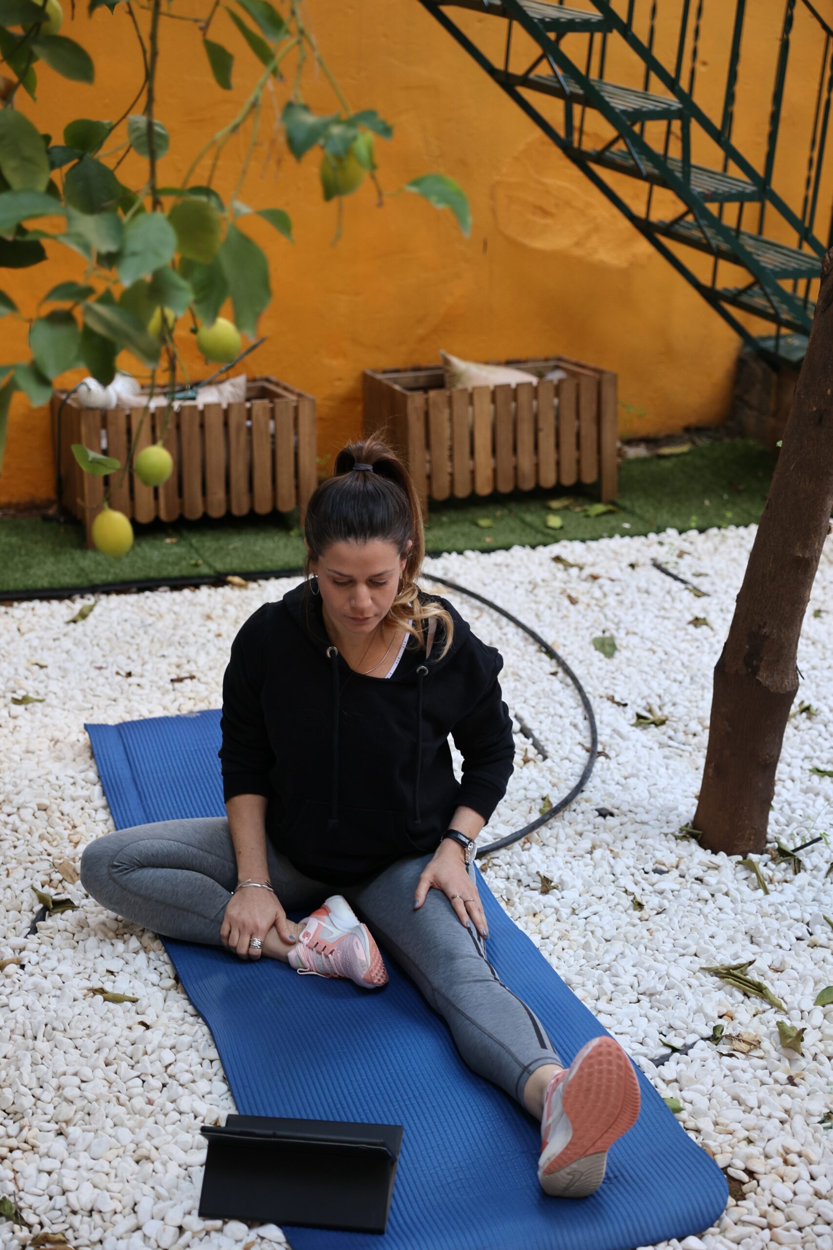 Ώρα για Pilates για την Μυρτώ Αντωνοπούλου! Όταν δεν έχει χρόνο να πάει στο μάθημα, παρακολουθεί live μάθημα στο tablet.
