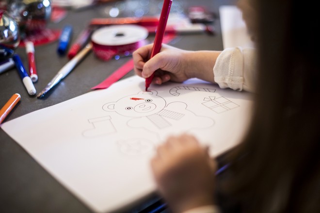 Στο Σαλόνι με το μεγάλο Χριστουγεννιάτικο δέντρο, τα παιδιά είχαν την ευκαιρία να ανοίξουν τα κουτιά με τα Χριστουγεννιάτικα στολίδια από το ArGOODaki και να τα κρεμάσουν στο δέντρο αλλά και να ζωγραφίσουν σε όμορφες χρωμοσελίδες.