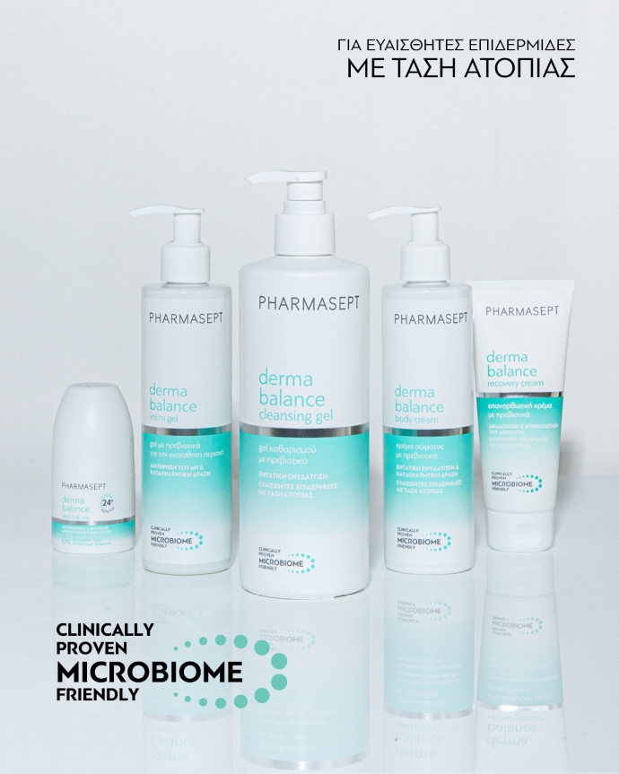 Επιπρόσθετα, στη σειρά Derma Balance της Pharmasept υπάρχουν προϊόντα για σημεία του σώματός μας, που συνήθως παραμελούνται -αυτό της μασχάλης και της ευαίσθητης περιοχής, στα οποία συνήθως χρησιμοποιούνται προϊόντα με ακατάλληλες συνθέσεις που διαταράσσουν το δερματικό μικροβίωμα.