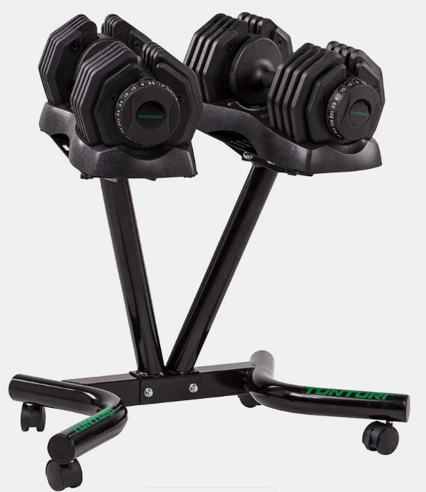 O Ρυθμιζόμενος Αλτήρας Tunturi Selector Dumbbell είναι ρυθμιζόμενος από 2, 5 έως 25 κιλά χρησιμοποιώντας ένα μοναδικό σύστημα με κουμπί ασφαλείας. Μπορείς να τον ρυθμίσεις ανάλογα το επίπεδο και την άσκηση που θέλεις να κάνεις. Η αλλαγή βάρους γίνεται έως και οκτώ φορές γρηγορότερα από ό, τι αν χρησιμοποιείς κανονικό αλτήρα. Ιδανικό αν θέλεις να κάνεις διαδοχικές ασκήσεις χωρίς μεγάλα διαλλείματα. Τα βάρη που δεν χρησιμοποιούνται θα παραμείνουν στη βάση.