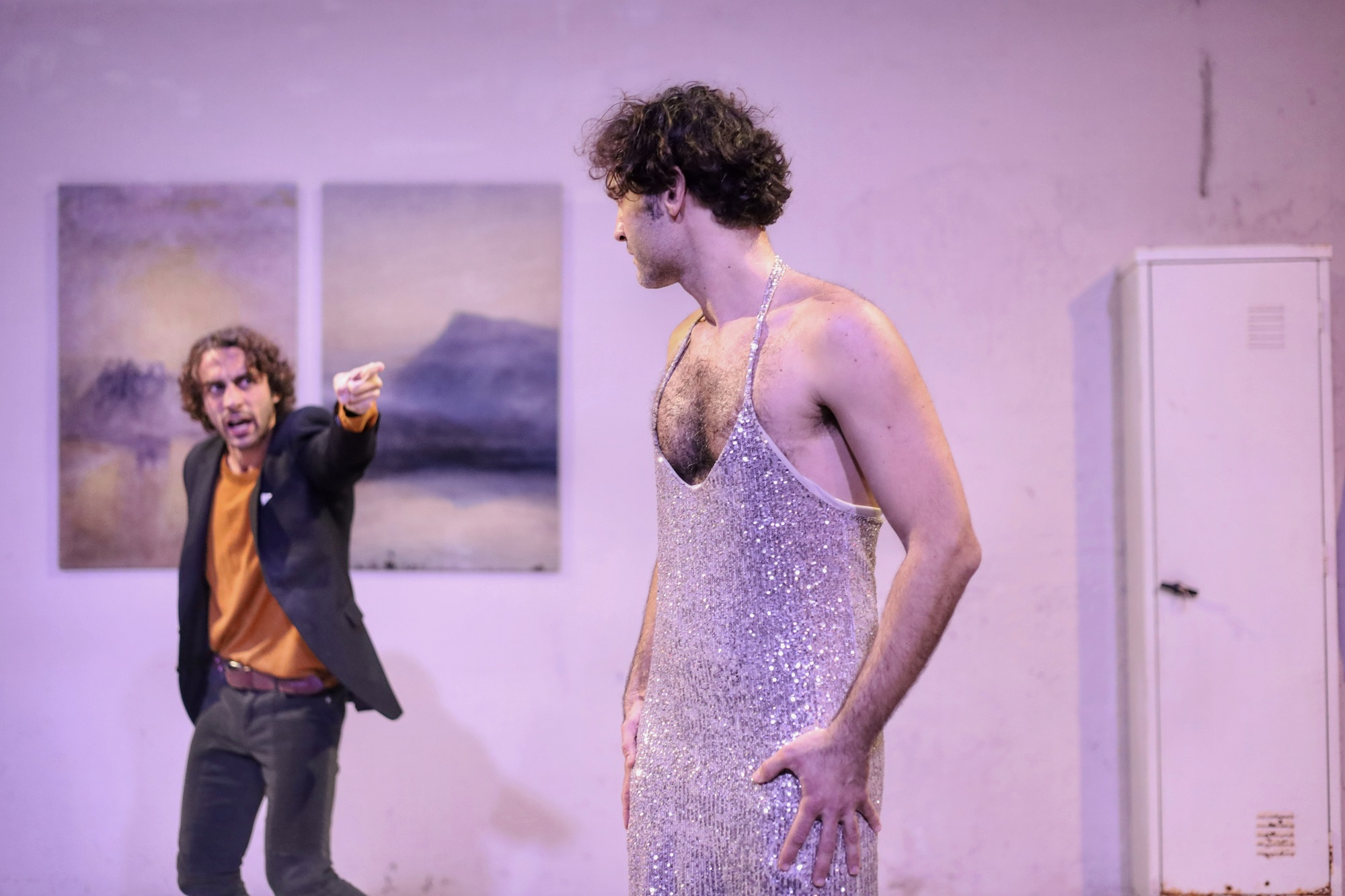 Ο Άρης Σερβετάλης με μία κινησιολογία που μαγνητίζει, σωματοποιεί άριστα -υπό την καθοδήγηση της Έφης Μπίρμπα- τον Γελοίο, και μας ξεναγεί στον κόσμο του οδηγώντας μας στα μύχια των σκέψεών του, μεταξύ πραγματικού και φανταστικού, αλήθειας και ψευδαίσθησης, ορατού και αόρατου, κωμικού και τραγικού, γελοιότητας και σαλότητας.