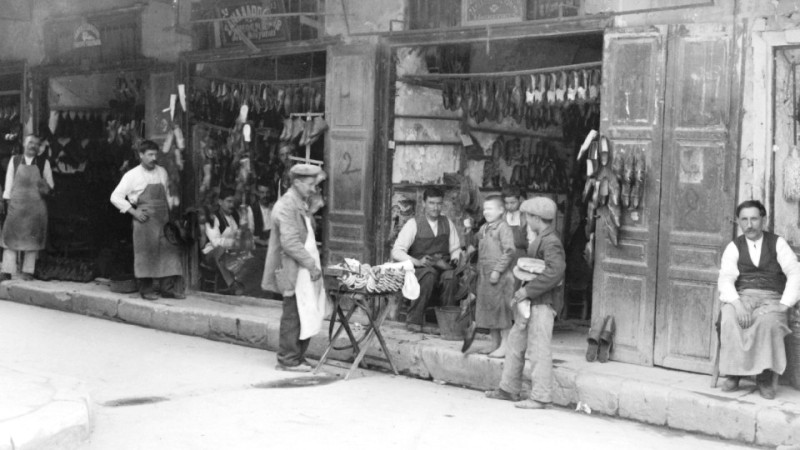 (Σανδαλοποιεία στην οδό Αθηνάς, 1920. Φωτογραφία του Boissonnas © Αρχείο Fred Boissonnas, Μουσείο Φωτογραφίας Θεσσαλονίκης. Αρ. φωτογραφίας: 2101b)