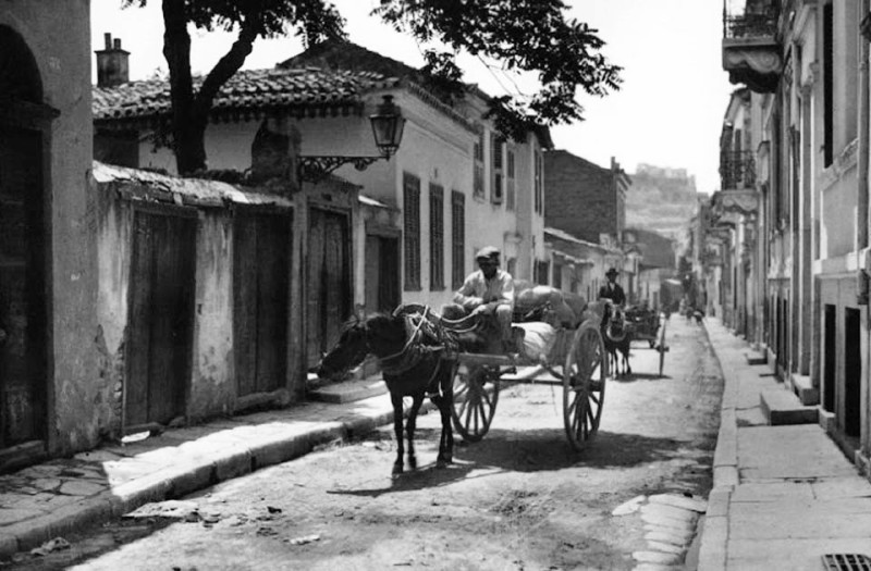 (Αμαξάς σε δρόμο της Πλάκας, 1920. Φωτογραφία του Boissonnas © Αρχείο Fred Boissonnas, Μουσείο Φωτογραφίας Θεσσαλονίκης. Αρ. φωτογραφίας: 2099Α)