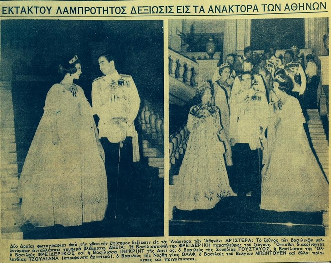 Σύμφωνα με την εφημερίδα “Το Βήμα”: κατά τους χθεσινούς γάμους έκαναν την εμφάνιση τους δύο καινούργια στοιχεία, που δεν υπήρχαν σε άλλες επίσημες εκδηλώσεις και πανηγυρισμούς. Πρώτον η λειτουργία του συστήματος τηλεοράσεως, που μετέδιδε αμέσως όλες τις φάσεις των γεγονότων και δεύτερον η καθιέρωση του αμερικάνικου εθίμου, να εκφράζει το κοινό την συγκίνηση του πετώντας… μικρά κομμάτια χαρτιού, από τα μπαλκόνια και τις ταράτσες, προς τους τιμώμενους. Πάνω από 300 συσκευές τηλεοράσεως “έπιασαν” χθες την αναμετάδοση της τελετής των βασιλικών γάμων σε όλη την Αθήνα. Οι 70 από αυτές τοποθετήθηκαν από την ιταλική R.A.I. και οι υπόλοιπες ανήκουν σε διάφορους ιδιώτες και επιχειρηματίες, που τις είχαν εγκαταστήσει στις βιτρίνες των καταστημάτων τους, για διαφημιστικούς λόγους. Ο κόσμος έτρεξε να παρακολουθήσει τόσο το μεταδιδόμενο πρόγραμμα όσο και την λειτουργία της μεγάλης άγνωστης για την χώρα μας που λέγεται “τηλεόραση”.