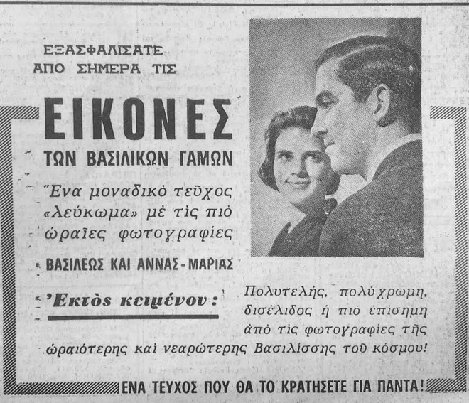 Σεπτέμβρη του 1964, η Αθήνα ζούσε σε ρυθμούς παραμυθιού με πρίγκιπες και άμαξες. Ο νεαρός Κωνσταντίνος θα έκανε μέσω του γάμου την 17χρόνη πριγκίπισσα της Δανίας, Άννα Μαρία, βασίλισσα της Ελλάδας. Στους πρώτους και τελευταίους βασιλικούς γάμους που γνώρισε η Αθήνα