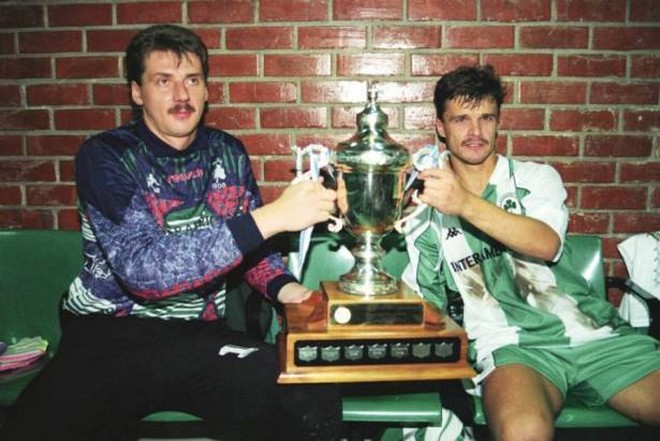 Το έχω πει πολλές φορές ότι η επιτυχία του Παναθηναϊκού εκείνη τη χρονιά οφείλεται στο φανταστικό κλίμα που είχαμε στα αποδυτήρια. Υπήρχε επίσης και πολύ καλό έμψυχο δυναμικό και έτσι φτάσαμε ψηλά. Τώρα για το γκολ, θυμάμαι να κάνω κωλοτούμπα και δεν είχα αντιληφθεί ότι η μπάλα μπήκε στο τέρμα.