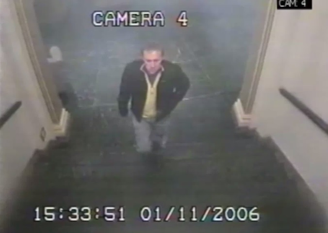 Η κάμερα του κλειστού κυκλώματος που βρίσκεται πάνω από τη ρεσεψιόν του ξενοδοχείου καταγράφει τους δύο δράστες να κάνουν check in με διαφορά μιας ημέρας. Ο Κοβτούν φθάνει στο Millenium στις 31 Οκτωβρίου στις 08:32 (όπως προκύπτει από την καταγραφή που φέρουν όλες οι εικόνες που προέρχονται από το κύκλωμα), ενώ ο Λουγκοβόι έχει ήδη «τσεκάρει» από την προηγούμενη. Καταλήγει στο ξενοδοχείο μαζί με την οικογένειά του και οι εικόνες του CCTV τον δείχνουν να φορά ένα κασκόλ της ΤΣΣΚΑ Μόσχας. Έφθασε στο Λονδίνο για να παρακολουθήσει, υποτίθεται, τον αγώνα της ομάδας του με την Άρσεναλ. Είναι παλιός γνώριμος του Λιτβινένκο, με τον οποίο ήταν συνάδελφοι στην KGB. Ως ειδήμων στην παρατήρηση, προφανώς εντοπίζει το σημείο του ισογείου που δεν καλύπτεται από τις κάμερες του ξενοδοχείου: Είναι το Pine Bar, που βρίσκεται αμέσως μετά την κεντρική είσοδο, στο αριστερό της τμήμα. Εκεί συναντιούνται οι τρεις άνδρες την 1η Νοεμβρίου.