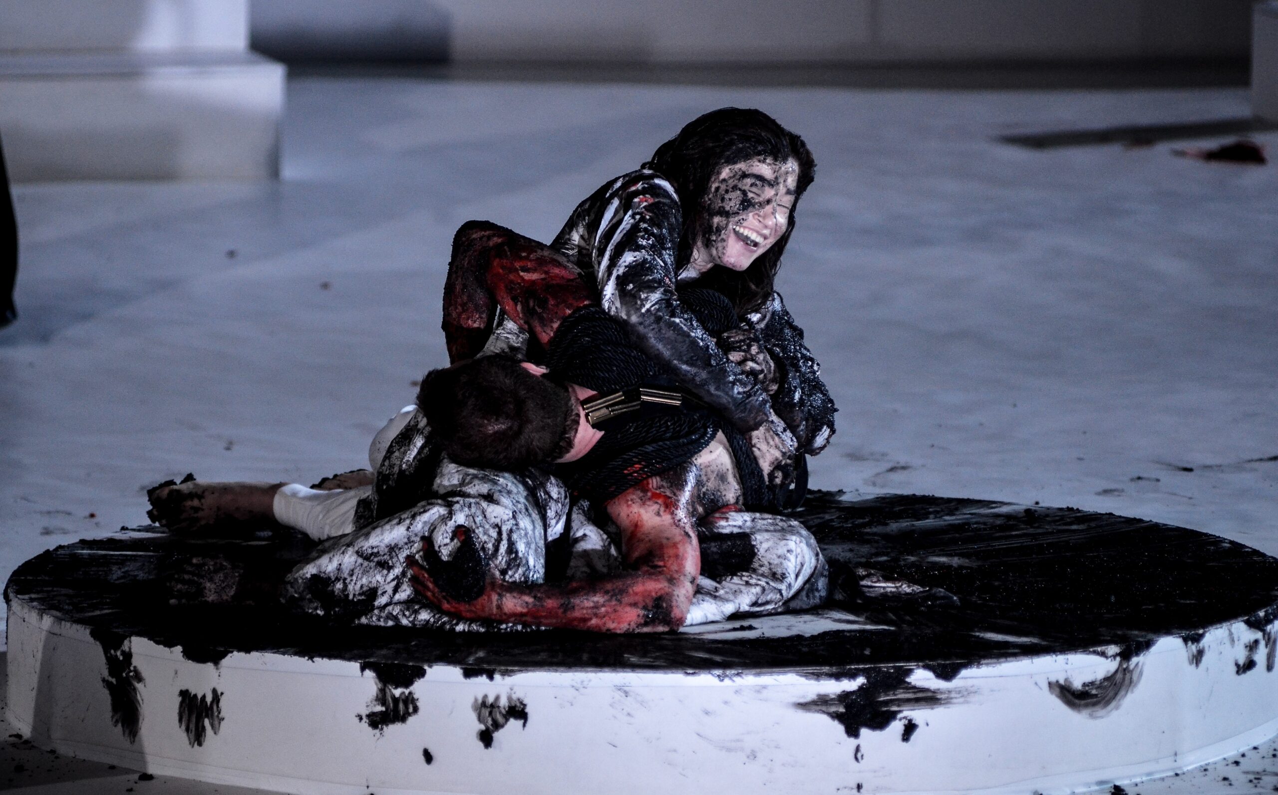 Καταρχάς έχει την φοβερή ιδιαιτερότητα να μη στηρίζεται σε μύθους,όπως οι περισσότερες τραγωδίες, αλλά σε μία ιστορική πραγματικότητα. Στην παράσταση του Γκότσεφ η οπτική του έργου περιστρεφόταν γύρω από τον μηχανισμό της εξουσίας. Ήμουν πολύ τυχερή που συνεργάστηκα με τον Γκότσεφ ένα καλοκαίρι μετά τον Βασίλιεφ, γιατί ήδη μου είχαν ανοιχτεί διάφορετικοί τρόποι αντίληψης του αρχαίου δράματος και αυτό που κάναμε και με τον Γκότσεφ συνομιλούσε με αύτους