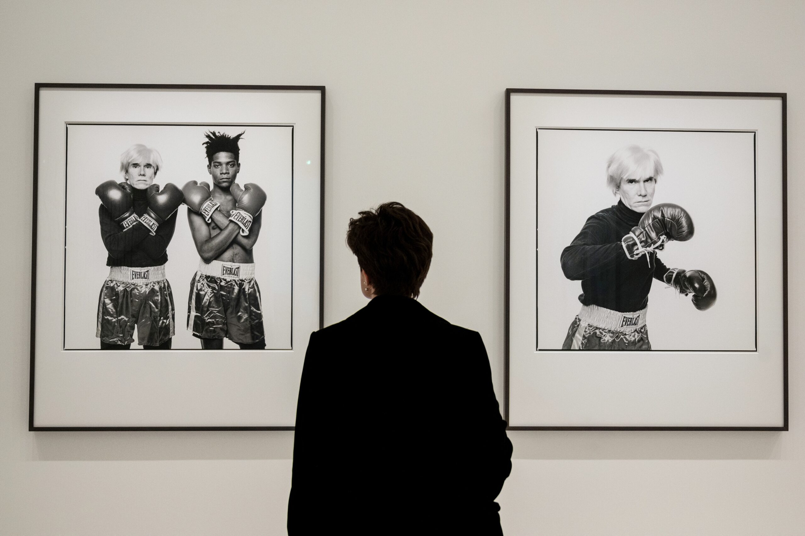 Μία από τις πιο εμβληματικές πόζες της έκθεσης είναι φυσικά η φωτογραφία των δύο θρύλων της τέχνης με γάντια του μποξ. Η λήψη έγινε από τον γνωστό φωτογράφο Michael Halsband, ο οποίος ήταν επιλογή του Basquiat.