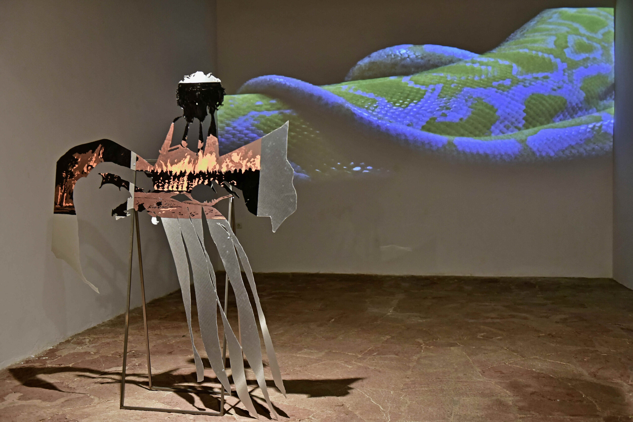 Τα υβριδικά πλάσματα της Λητούς Κάττου που συνδυάζουν το ανθρώπινο, το θεϊκό, την πανίδα και τη χλωρίδα ενσαρκώνουν αυτήν τη ζωτική ανάγκη προσαρμογής στις νέες περιβαλλοντικές προκλήσεις χάρη στη μετάλλαξη, και κατά συνέπεια, χάρη στην καινοτομία. Σε ευθύ διάλογο με τα επίπεδα γλυπτά της Κύπριας καλλιτέχνιδας, τα βίντεο της Anne-Charlotte Finel υπογραμμίζουν αυτούς τους ενδιάμεσους χώρους, αυτά τα διάκενα, αυτούς τους απάτη τους ενδιάμεσους χωροχρόνους όπου όλες οι μεταμορφώσεις είναι πιθανές. “Είτε είμαστε γεωμέτρες είτε όχι, μπορούμε να καινοτομήσουμε στο ενδιάμεσο.” όπως τόνιζε ο φιλόσοφος Michel Serres.