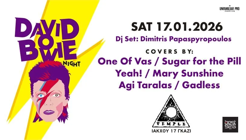 -O Agi Taralas είναι μουσικός θα παίξει live στη μνήμη του Bowie το Σάββατο 17/1 στο Temple μαζί με Sugar for the pill, Mary Sunshine, Yeah!, κ.α.