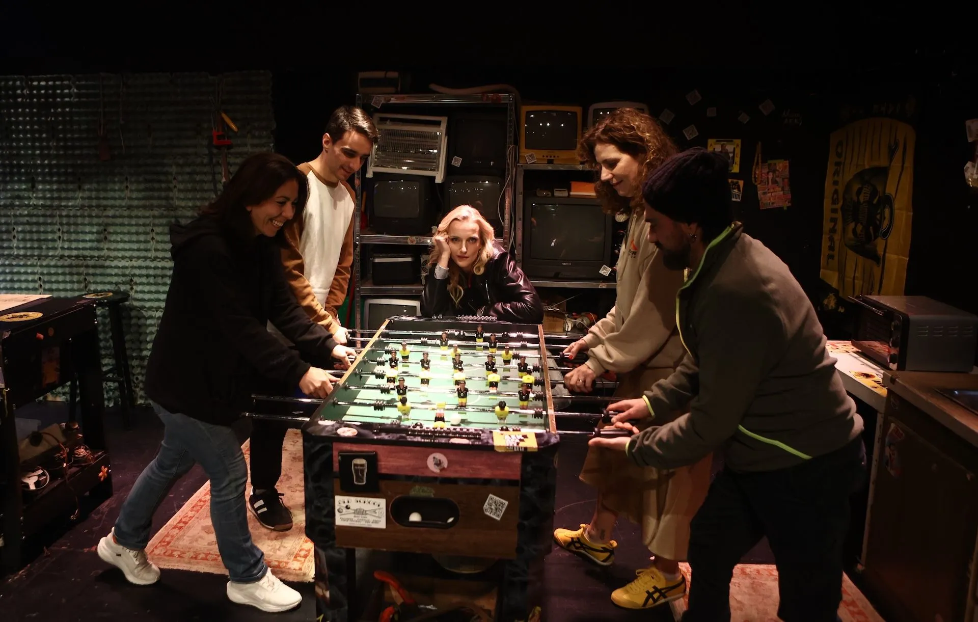 Στην τρίτη κοινή μας συνέντευξη με μία θεατρική ομάδα, καταφέραμε μετά από πολλές Πέμπτες που θα τους συναντούσαμε, να κάτσουμε μαζί τους στο σκηνικό τους στο θέατρο ΑΝΕΣΙΣ. Όπως ήταν αναμενόμενο, οι συντελεστές του Τζόνι Μπλε, Γιωργής Τσουρής και Βάλια Παπακωνσταντίνου (που συνυπογράφουν και το κείμενο), Ιωσήφ Ιωσηφίδης, Μάνος Καζαμίας και Στρατής Χατζησταματίου είναι ενθουσιώδεις, μιλούν αρκετά ο ένας πάνω στον άλλον, θα λένε Α (ακατάλληλες) λέξεις – που πάντα θα επισημαίνουν πως δεν πρέπει να τις γράψουμε, θα γελούν. Και εμείς μαζί τους.