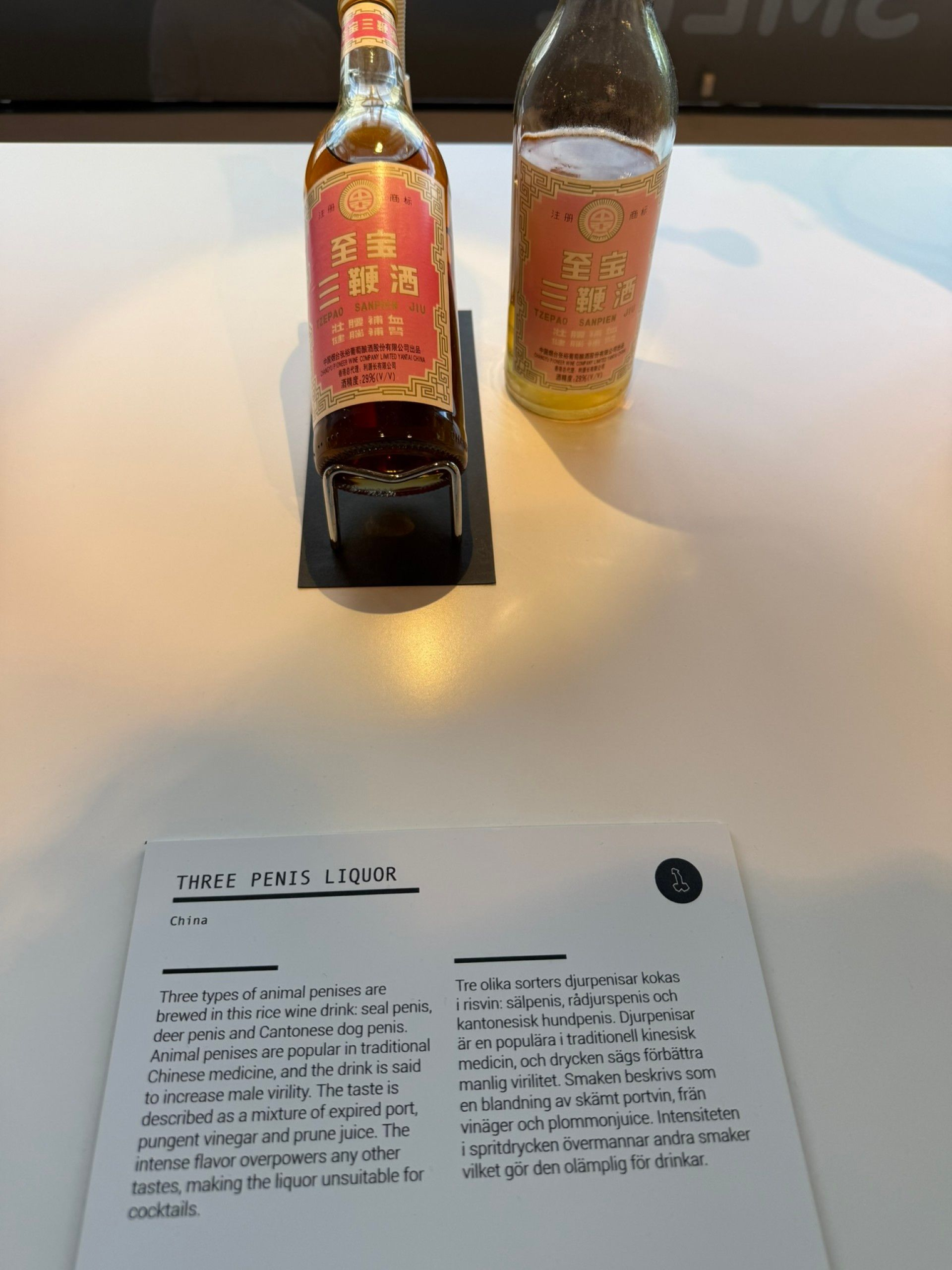 Κι ενώ κοιτούσα το “Three-Penis Liquor” – ένα ποτό από διάφορα ζωικά πέη, τα οποία βράζονται για να προσδώσουν ζωτικότητα. Αν διαβάσει κανείς την ετικέτα στο πίσω μέρος, θα ανακαλύψει ποια είναι τα τρία: πέος φώκιας, πέος ελαφιού και πέος σκύλου Καντονέζικης ράτσας- και κρατούσα τη μύτη μου μπροστά σε ένα βάζο που έγραφε «shark fermented in urine» (ναι, υπάρχει και είναι ένα ισλανδικό έδεσμα φτιαγμένο από κρέας γροιλανδικού καρχαρία, το οποίο υφίσταται ζύμωση και στη συνέχεια ξηραίνεται για μήνες προκειμένου να καταστεί βρώσιμο), ταυτόχρονα αναλογιζόμουν ότι για κάποιον που δεν μεγάλωσε στην Ελλάδα, το δικό μας κοκορέτσι ή οι συκωταριές μπορεί να προκαλούν την ίδια αηδία.