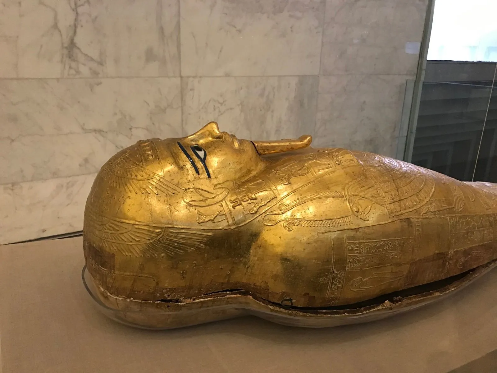 Περπατώντας στην Κεντρική Πτέρυγα του Μουσείου, ανάμεσα σε αρχαιότητες και καθημερινά αντικείμενα, αντικρίσαμε το άριστα διατηρημένο φέρετρο του Sennedjem με τις σκηνές προστασίας από τις θεότητες του «Βιβλίου των Νεκρών» και το χρυσό άρμα του Τούθμωσις IV, που μαρτυρούν τη τεχνική και κοσμική δύναμη της νέας εποχής.