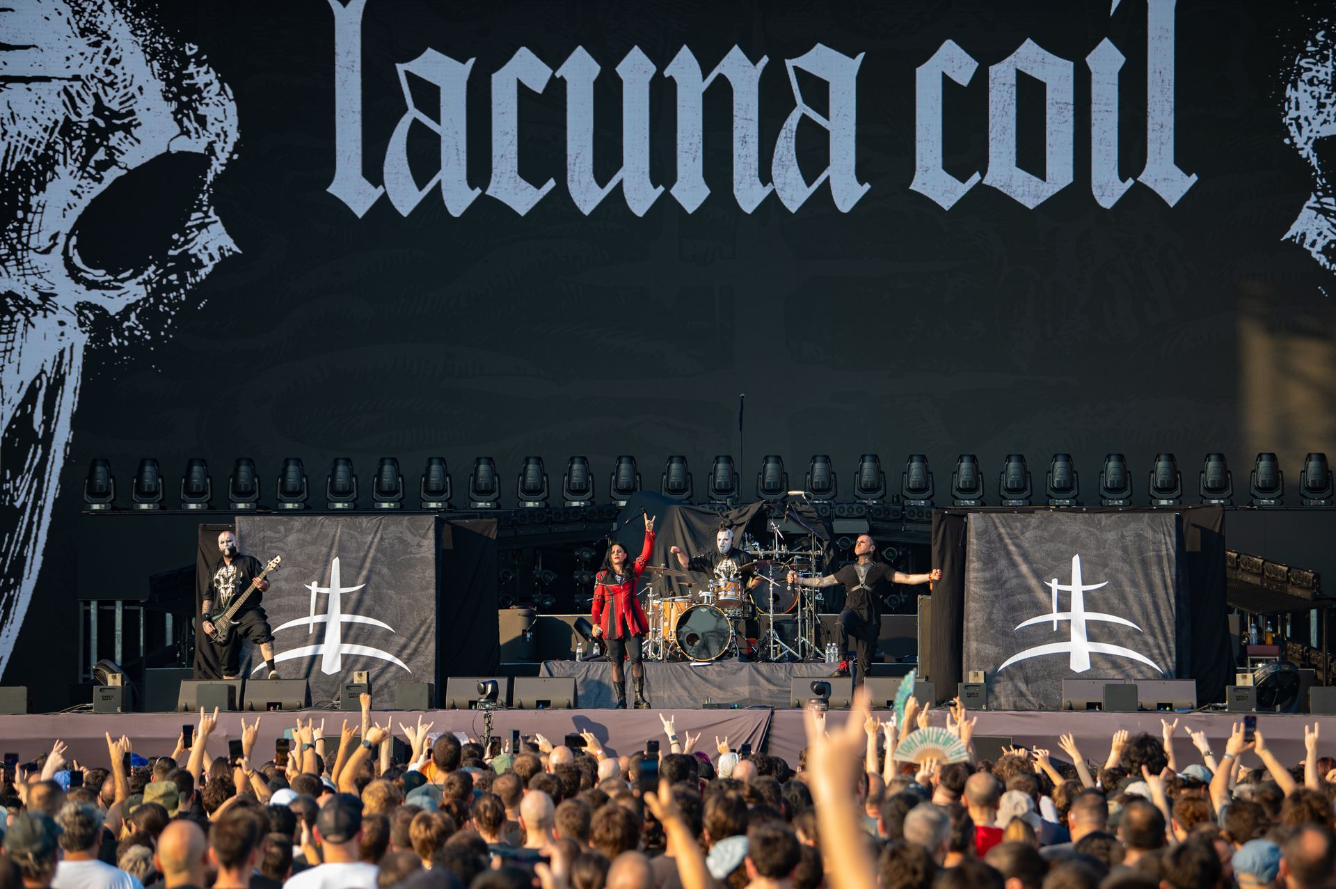 Με νωπές ακόμα τις εικόνες από το live της Kylie Minogue, φτάσαμε στην Πλατεία Νερού που το βράδυ του Σαββάτου είχε αμιγώς metal κοινό και τελείως διαφορετική ατμόσφαιρα. Το σύμβολο των Lacuna Coil – όνομα που σημαίνει “κενή σπείρα” για να εκφράσει την αίσθηση του κενού ή την αναζήτηση νοήματος – εμφανίστηκε στη σκηνή του Release.