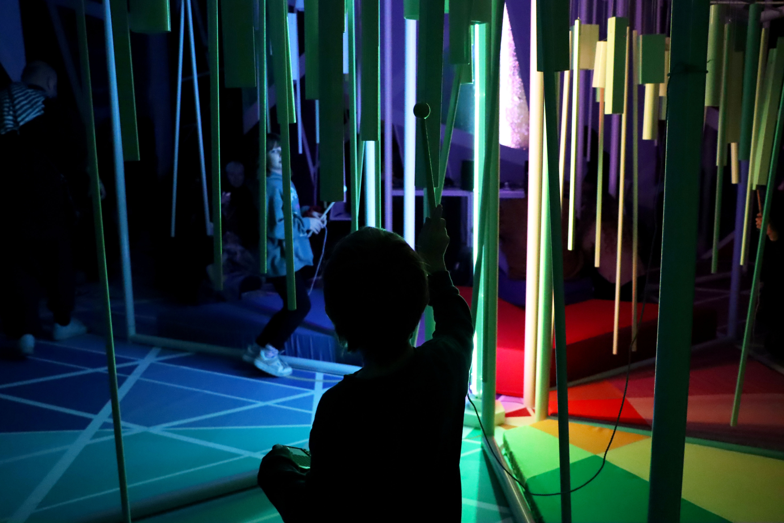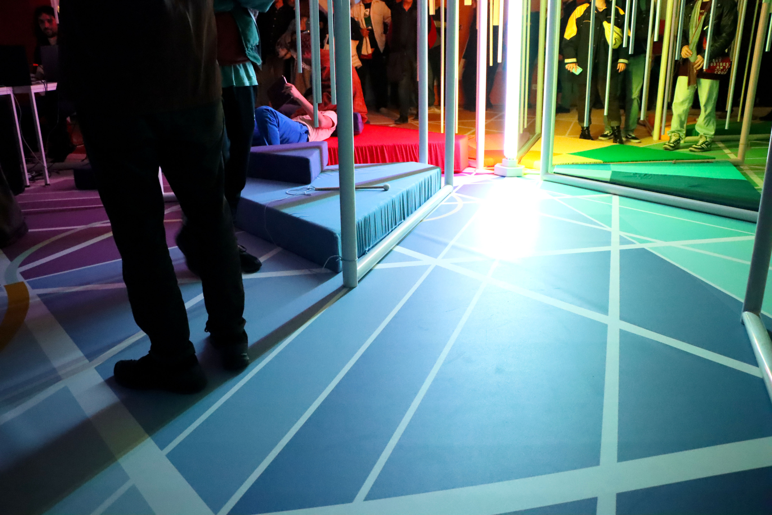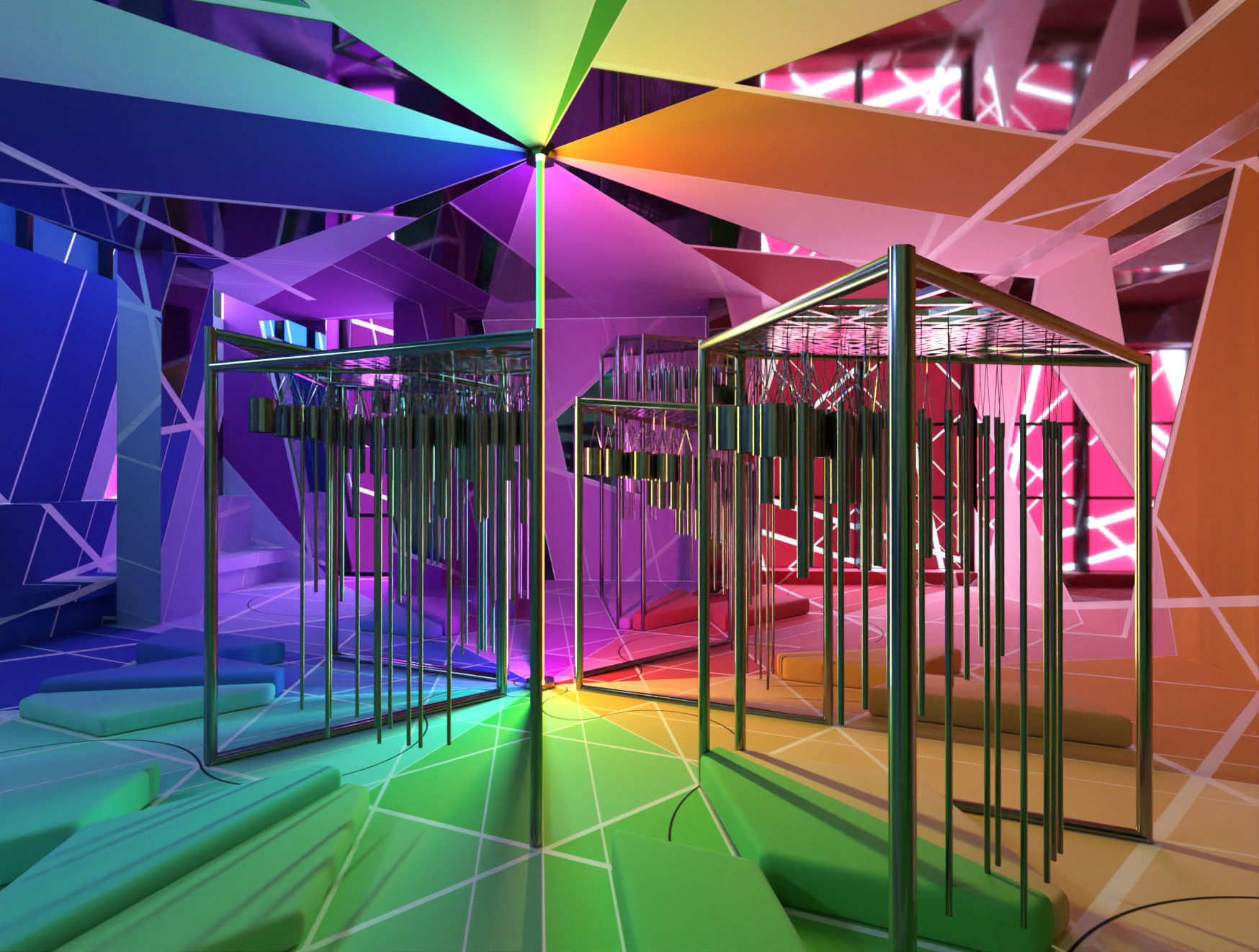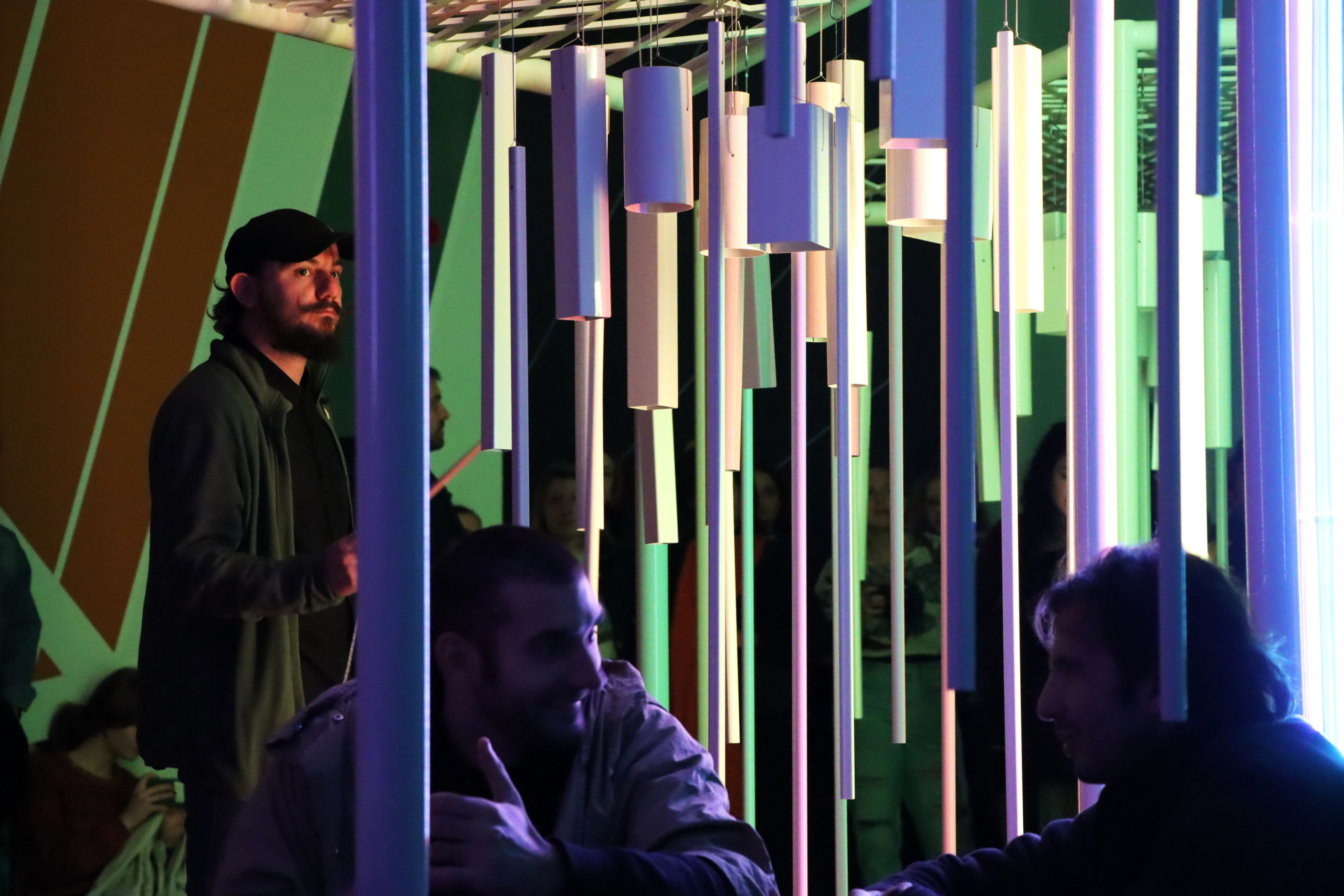 “Μέσα από τα έξι χρώματα και τις έξι αισθήσεις και τις έξι καταστάσεις, ήθελα να έχουμε έξι διαφορετικές ηχητικές στιγμές που αντιπροσωπεύουν κάθε μία από αυτές τις ενέργειες. Προσκαλέσαμε έξι ηχητικούς καλλιτέχνες/ μουσικούς [Agatha & Kristianna Tsimpi, Korhan Erel, Franziska Lantz, Alexander Stewart / Ge1, Saint Precious, André Vida], οι οποίοι εμπνεύστηκαν με διαφορετικούς τρόπους και δίνοντάς μας αρχεία ήχου, που ακούγονται διαδοχικά στο πλαίσιο της εγκατάστασης. Όμως ο επισκέπτης μπορεί να “παράξει” ήχους πάνω στους έξι μελωδούς, που μετατρέπουν τον ίδιο τον χώρο σε μουσικό όργανο. Μπορείς να έρθεις εδώ να αράξεις με τους φίλους σου ή μόνος σου να σκεφτείς.”