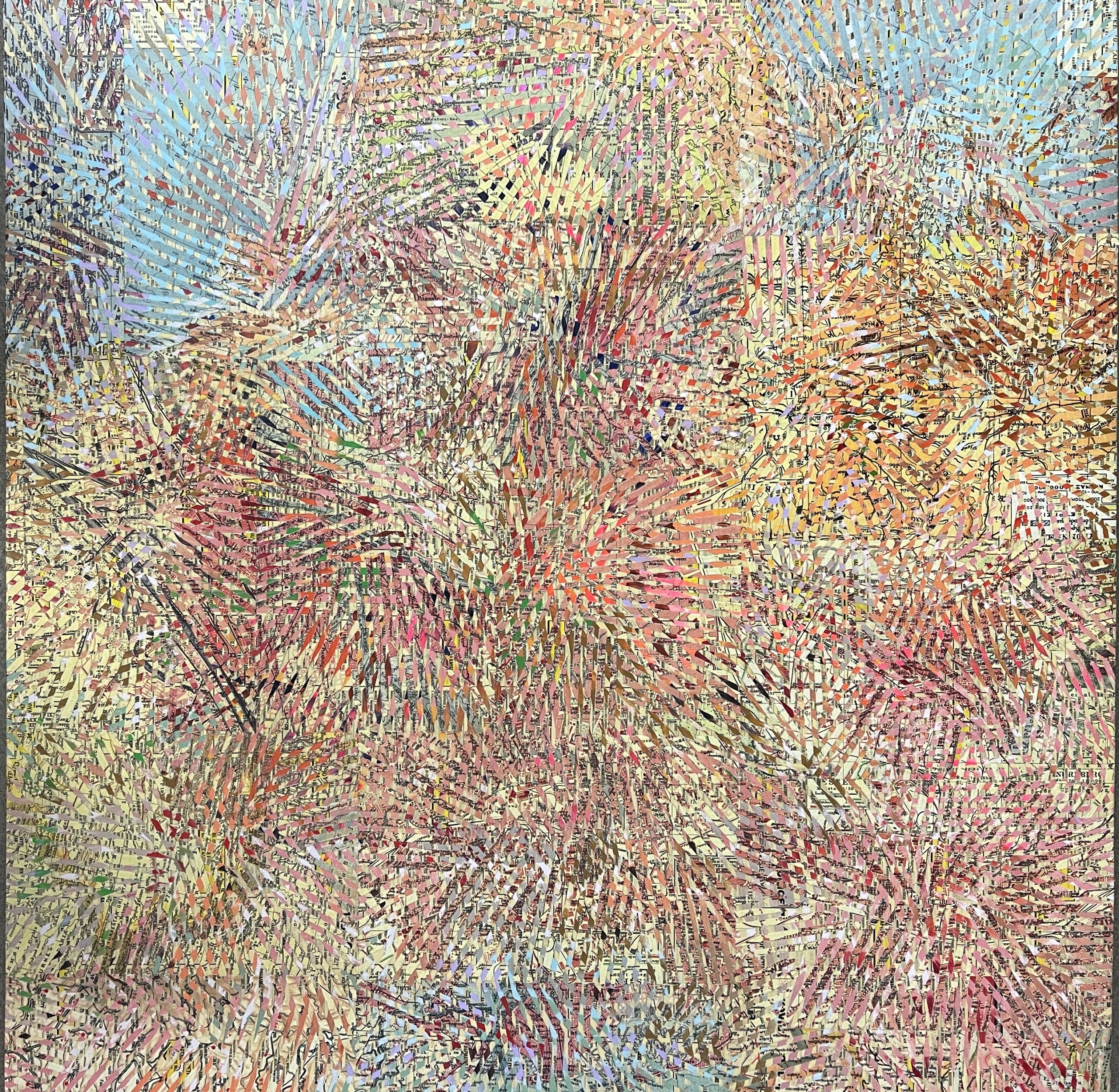 Στα καλλιγραφικά του σχέδια και στα έργα του με κολάζ ο Αντώνης Ντόνεφ αποτυπώνει μια καθαρά προσωπική πολυσχιδή και πολύχρωμη προσωπική θεώρηση της Γνώσης. Το ενδιαφέρον του Αντώνη Ντόνεφ για την διερεύνηση των ορίων της γνώσης, αλλά και των θεωριών για τη μάθηση, αντικατοπτρίζεται στη νέα σειρά έργων που παρουσιάζονται στην γκαλερί Kalfayan: περίπλοκα πολυεπίπεδα κολάζ σε καμβά τα οποία αποτελούνται από τμήματα από vintage χάρτες τους οποίους συλλέγει ο καλλιτέχνης διάρκεια των ταξιδιών του στην Ελλάδα και το εξωτερικό. Η χρονοβόρα διαδικασία της κοπής κάθε χάρτη σε δεκάδες λωρίδες και η επικόλλησή τους σε επάλληλα επίπεδα που σχηματίζουν γεωμετρικά μοτίβα με έναν οργανικό τρόπο, αποτυπώνουν τη διάθεση του καλλιτέχνη για επανασύνθεση της γνώσης. Αυτά τα γεωγραφικά παλίμψηστα απεικονίζουν την τρέχουσα γεωπολιτική αναταραχή σε όλο τον κόσμο και καθιστούν τα έργα του Αντώνη Ντόνεφ πιο επίκαιρα από ποτέ.