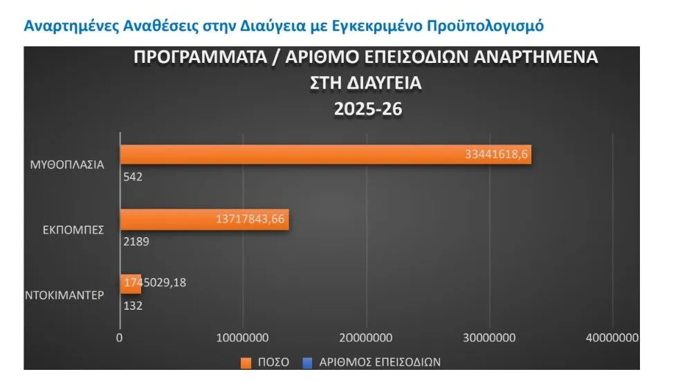 Επιπλέον, τα μέλη ανέλυσαν και τις αναρτημένες αναθέσεις στην Διαύγεια για να εντοπίσουν τα προγράμματα για τα οποία είχε εγκριθεί ο προϋπολογισμός το 2025, εντοπίζοντας την εξαιρετικά μικρή χρηματοδότηση για τα ντοκιμαντέρ σε σχέση με άλλου είδους εκπομπές και την μυθοπλασία.