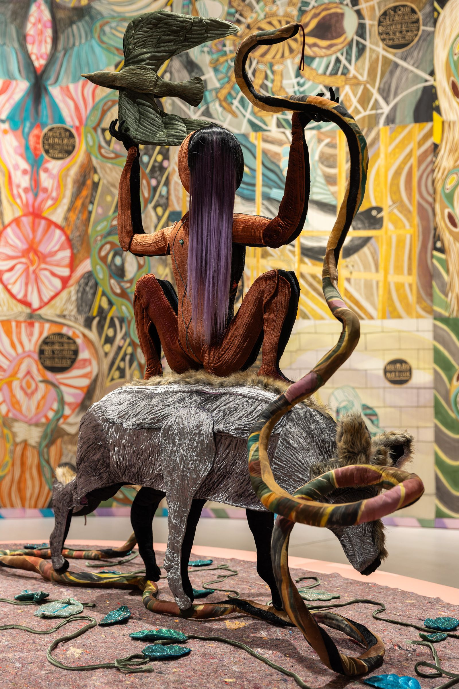 Λύκος, γυναίκα, πουλί και φίδι αναπτύσσονται μέσα στον φυσικό χώρο της έκθεσης. Το έργο έχει τρεις διαστάσεις. Στην απίστευτη υφαντουργική εγκατάσταση βλέπουμε υβριδικές ζωικές μορφές και φράσεις που διατυπώνονται σαν ανοικτές ερωτήσεις για τον θεατή.