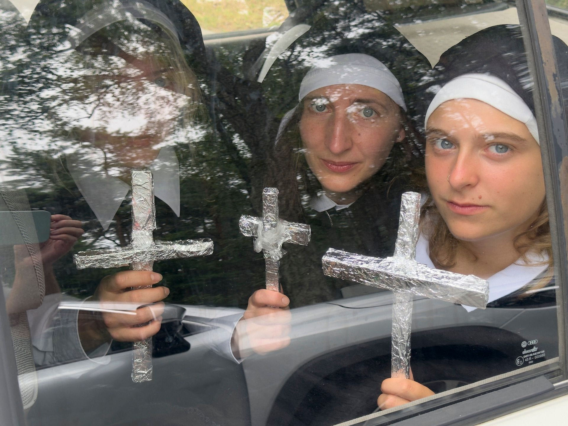 (Απάντηση από τη γυναίκα του, Dovile Drizyte): Συγγνώμη που διακόπτω αλλά πραγματικά έχει ενδιαφέρον αυτό το εγχείρημα. Είναι ένα κλασικό θέμα, όπως η εκκλησία, που όμως παρατηρούμε πως πολλές εκκλησίες πλέον δεν λειτουργούν αποκλειστικά ως θρησκευτικοί τόποι. Είναι πιο πολύ σαν μουσεία, ανοιχτά στο κοινό. Επισκεφθήκαμε, νομίζω, πενήντα εκκλησίες, ίσως και περισσότερες, σε διάφορα μέρη.