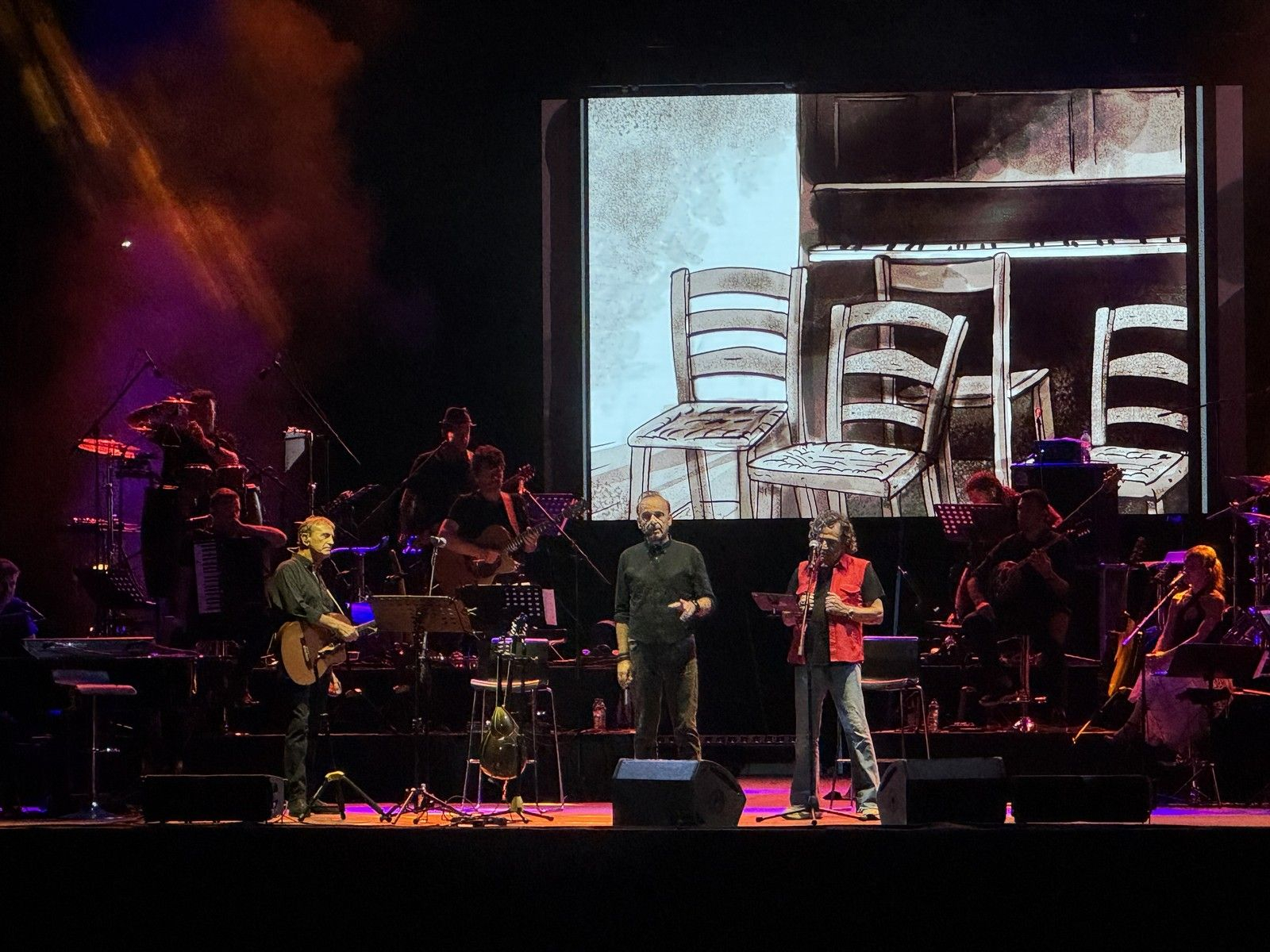 Έτσι ξεκίνησε ένα μουσικό ταξίδι διάρκειας περίπου τριών ωρών. Ο Γιώργος Νταλάρας και ο Βασίλης Παπακωνσταντίνου ερμήνευσαν τραγούδια που δεν σημάδεψαν μόνο τη δική τους διαδρομή, αλλά και τη ζωή των ανθρώπων που τους ακολουθούν. Κομμάτια που έγιναν παρέα, καταφύγιο, φωνή — σε στιγμές προσωπικές, συλλογικές, αξέχαστες.