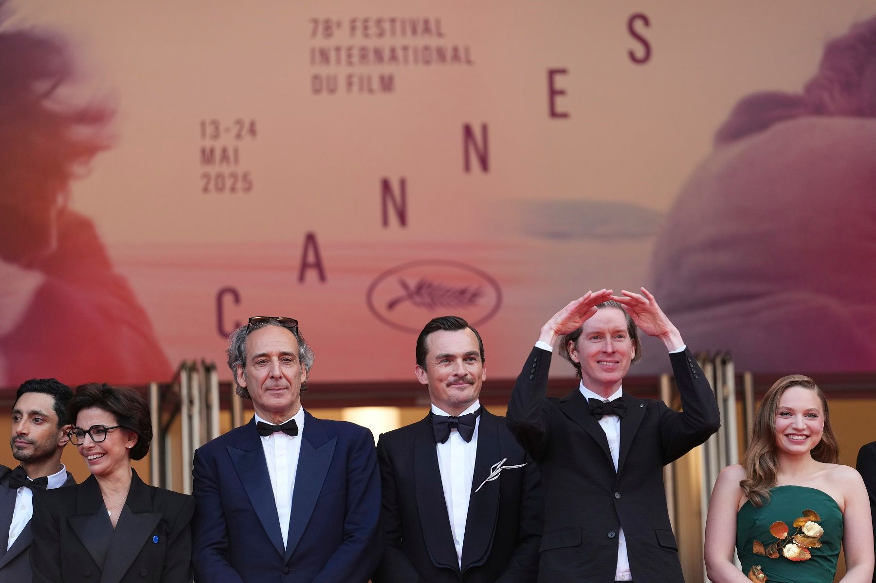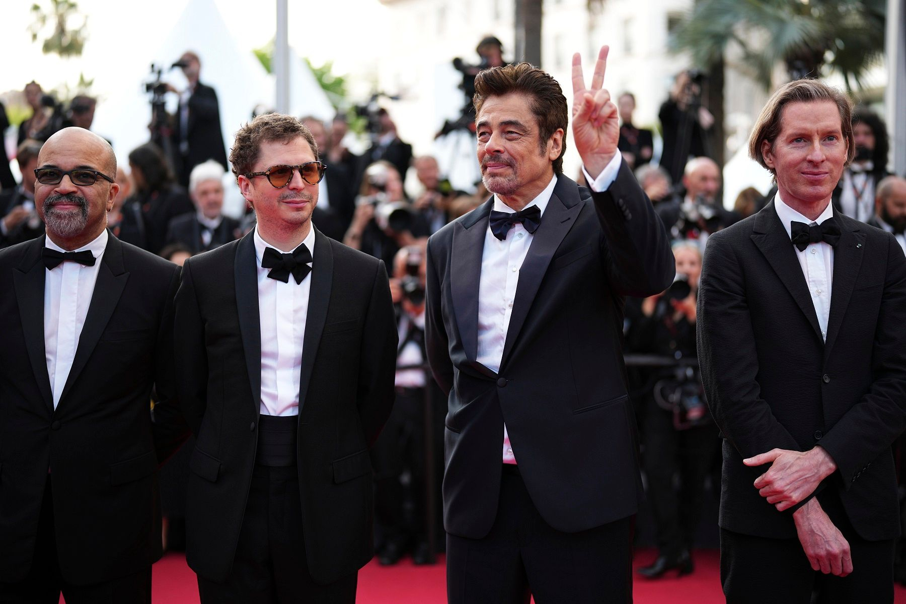 Ο Τζέφρι Ράιτ μαζί με τους Μάικλ Σέρα, Μπενίσιο ντελ Τόρο και Γουές Άντερσον, στο κόκινο χαλί για το Φοινικικό Σχέδιο στις Κάννες. Scott A Garfitt/Invision/AP