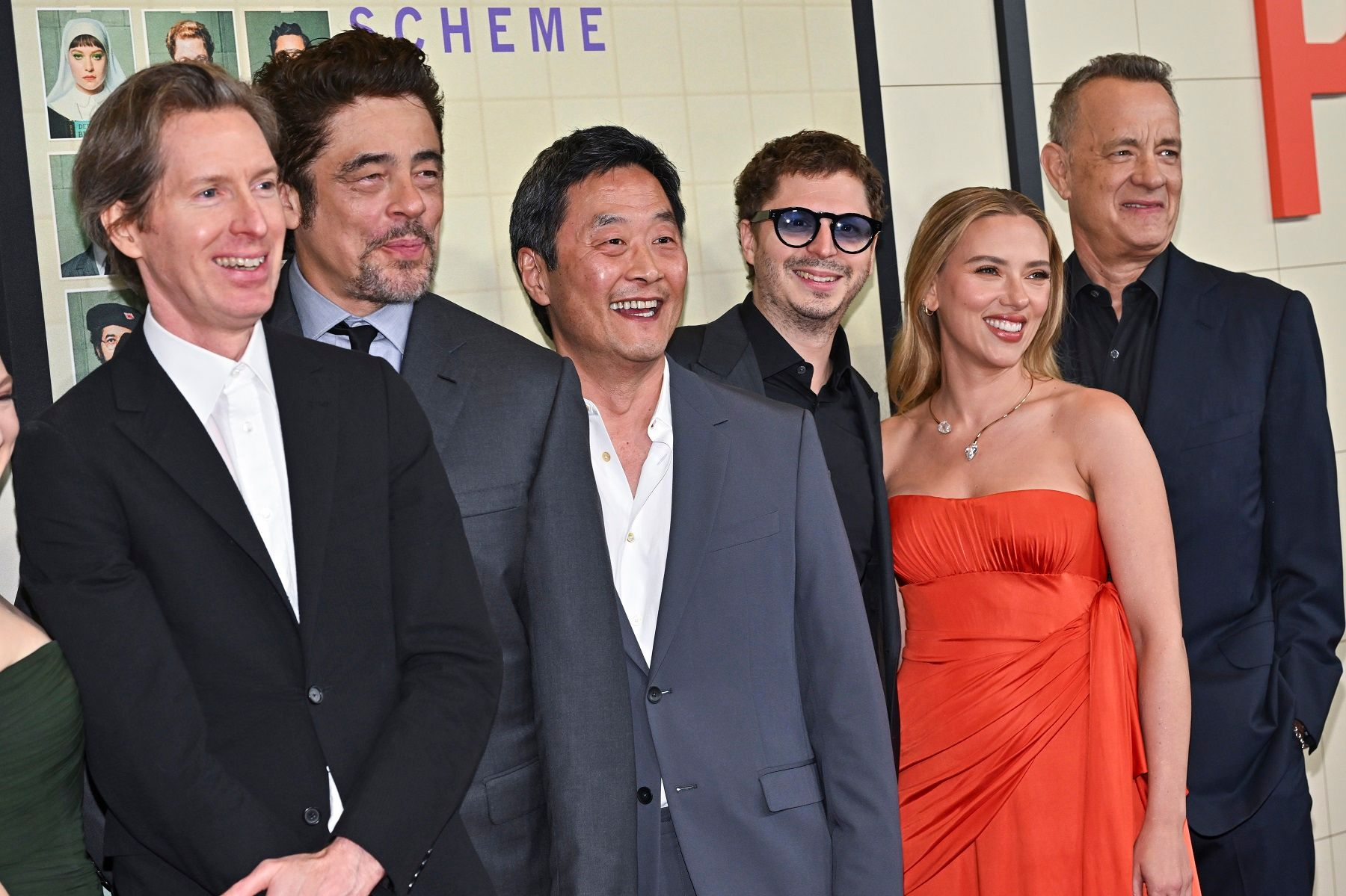Η Σκάρλετ Γιόχανσον μαζί με μισή ντουζίνα ακόμη μέλη του καστ της ταινίας του Γουές Άντερσον, στην πρεμιέρα του φιλμ στη Νέα Υόρκη. Evan Agostini/Invision/AP