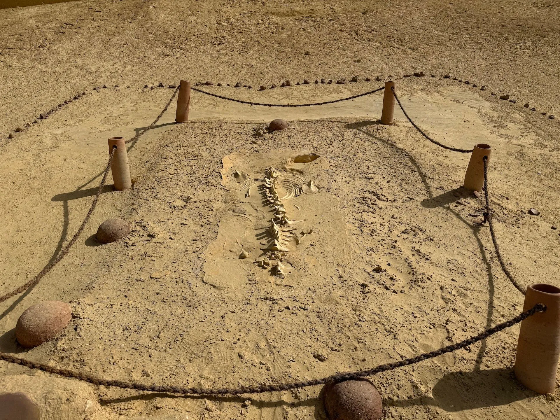 Καθώς περιπλανιόμαστε στην κοιλάδα, οι σκελετοί φαίνονται σαν ελικοειδή δόντια να ξεπροβάλλουν από την άμμο, δημιουργώντας μια εκθαμβωτική εικόνα από τη δύναμη του χρόνου. Η έκπληξή μου μεγαλώνει όταν μαθαίνω ότι το 2005, μια ομάδα Αιγυπτίων παλαιοντολόγων και ένας Αμερικανός κατάφεραν να βρουν τον απολιθωμένο σκελετό μιας φάλαινας του είδους Βασιλόσαυρος, που είχε μήκος 21 μέτρα και θεωρείται το μεγαλύτερο άθικτο απολίθωμα φάλαινας που έχει βρεθεί ποτέ.