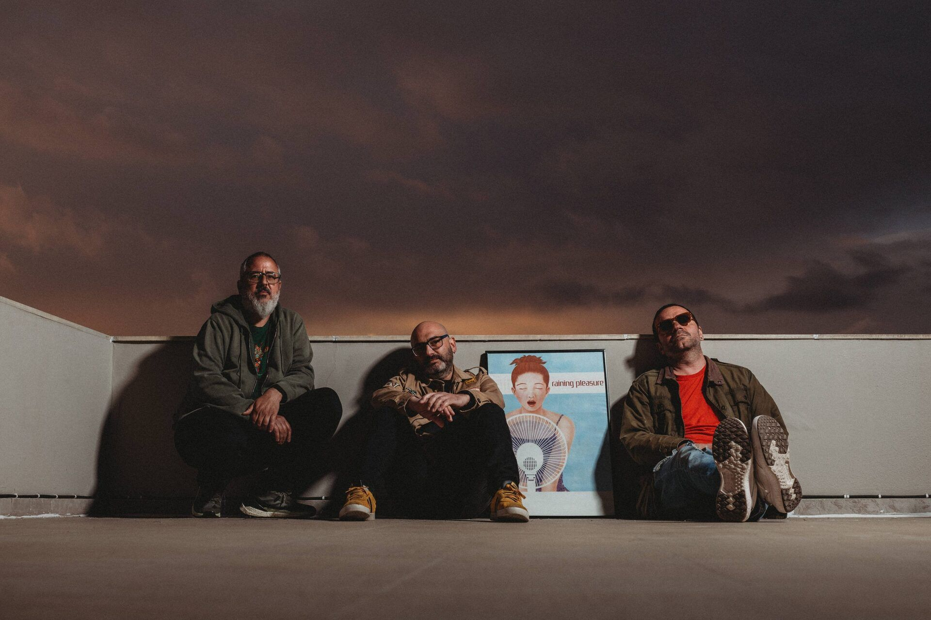 Η αφίσα των τριών Raining Pleasure, που μας κοιτούν κατάματα, φορώντας κίτρινα αδιάβροχα καταμεσής του καλοκαιριού, έχει κάτι το παράδοξο και υπαινικτικά σαρκαστικό. Μέσα στον θόρυβο της Αθήνας, την ασταμάτητη κίνηση και τον κατακερματισμό της προσοχής, η εικόνα τους μοιάζει με μικρή πρόκληση – ή ίσως μια σιωπηλή υπόσχεση. Ότι κάτι διαφορετικό ετοιμάζεται. Ότι κάτι ουσιαστικό μπορεί ακόμη να βρει χώρο να ακουστεί.