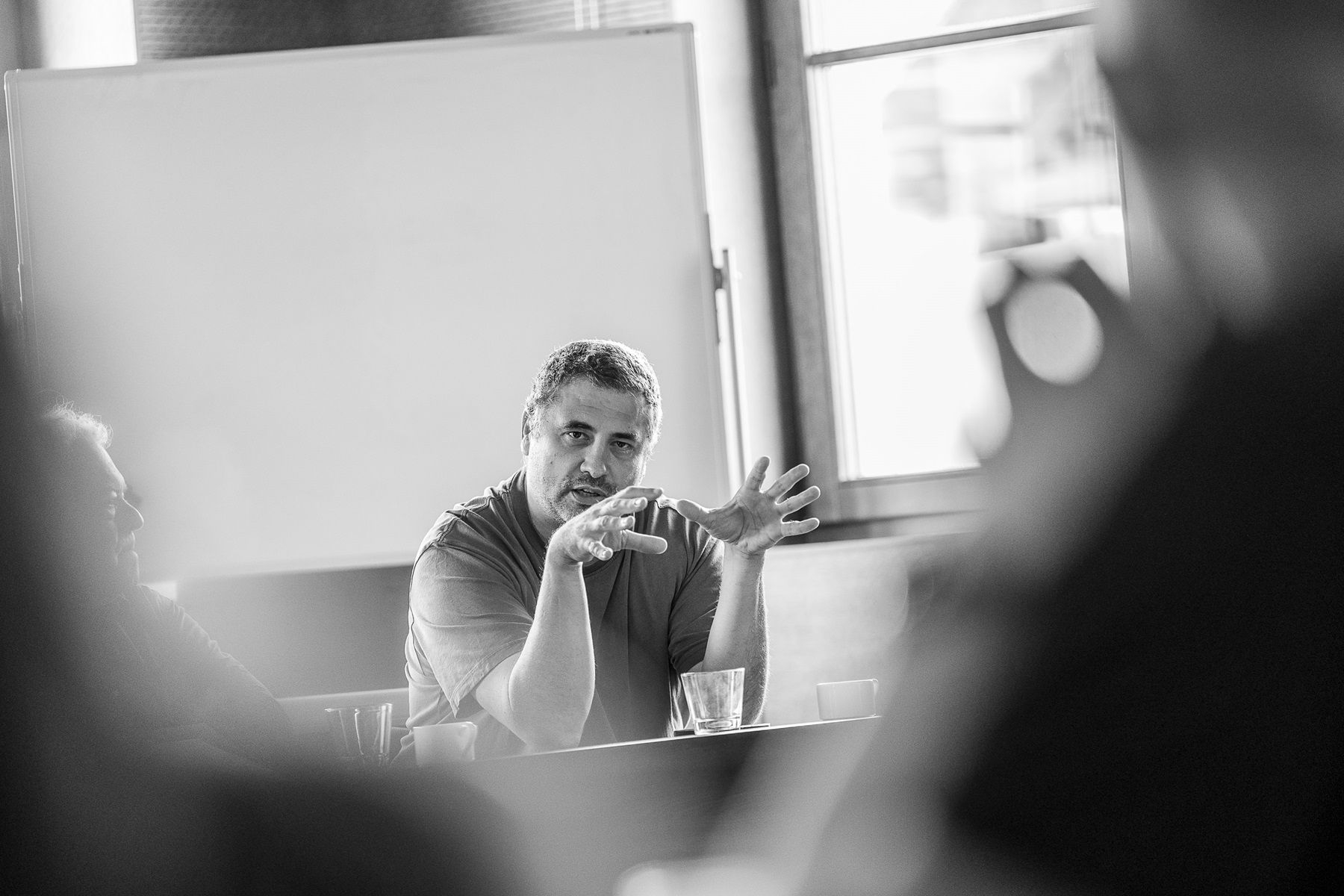 Δεύτερον, η ομάδα δασκάλων εκεί. Μπορούσες να έχεις κάποιον σαν τον Μάικλ Αλμερέιντα, ένας από τους σημαντικούς δημιουργούς του αμερικανικού ανεξάρτητου κινηματογράφου από τη δεκαετία του ’80 και του ’90, αλλά μετά μπορείς να έχεις κάποιον σαν τον Άλι Αμπάσι που είναι ένας πιο έμπειρος σκηνοθέτης του σήμερα, προσαρμοσμένος στον τρόπο που λειτουργεί η βιομηχανία με έναν πολύ εντυπωσιακό τρόπο. Που είναι πραγματικά εκπληκτικός στο να σκέφτεται ένα σενάριο με κλασικούς όρους, αλλά είναι επίσης ανοιχτός σε όλα τα πειραματικά,