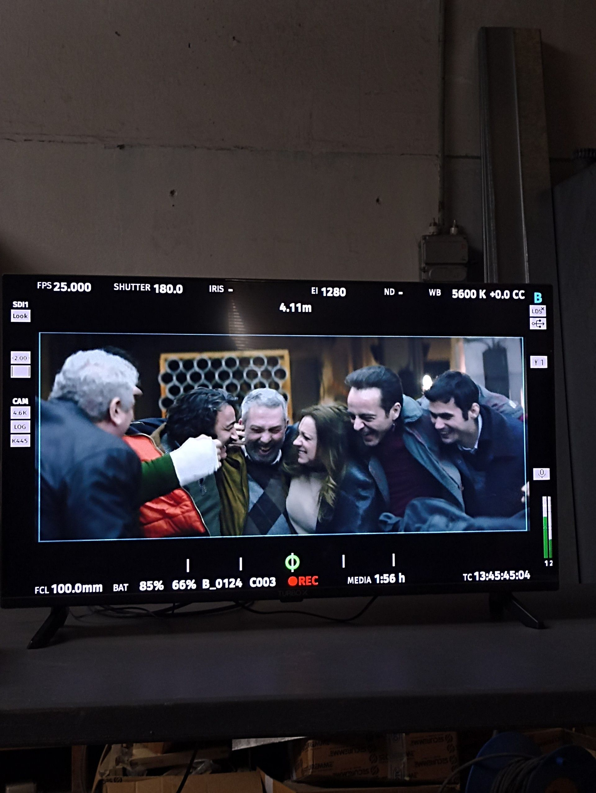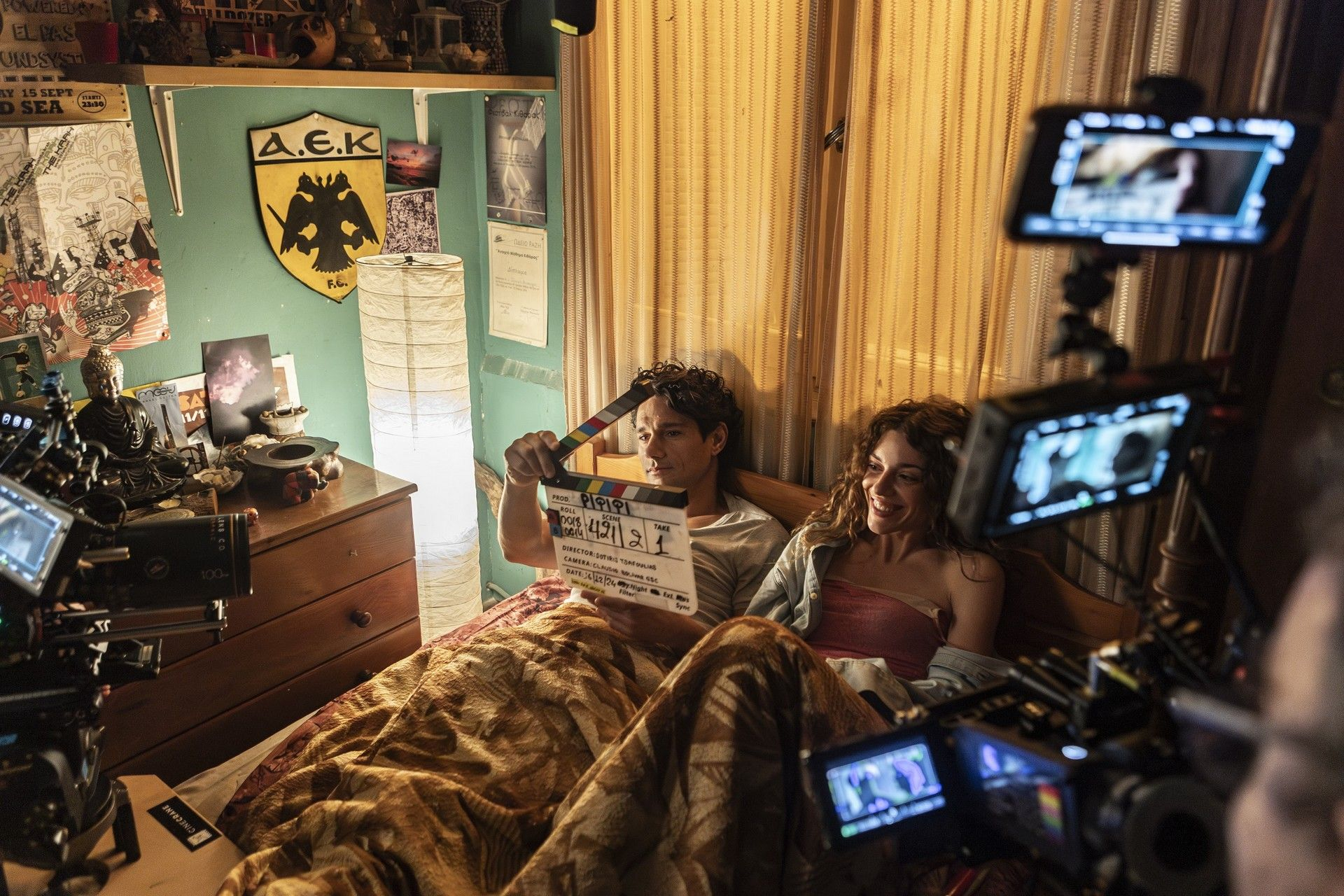 Στα δεξιά, υπάρχει στημένη μια οθόνη. Μια παρέα αγκαλιάζεται ενθουσιασμένη, διακρίνω τις φιγούρες τους, χαμόγελα, φωνές. Προχωρώντας «προς τα μέσα», τους βλέπω live να κάθονται σε κύκλο και να μιλάνε. Άλλοτε σοβαρά, άλλοτε με γέλια. Μπαίνουν στον ρόλο τους σε δευτερόλεπτα, προβάρουν τα λόγια τους, αλληλεπιδρούν με τη χημεία τους να είναι έκδηλη, σταματούν, «βγαίνουν» από τον ήρωά τους, παίρνουν μια ανάσα, λένε αστεία και συνεχίζουν.