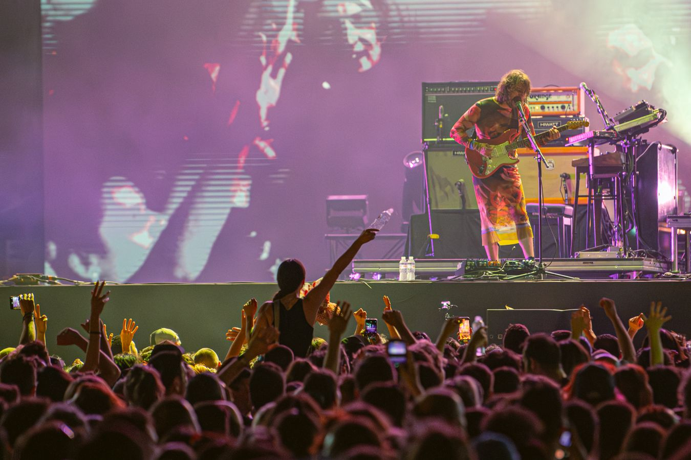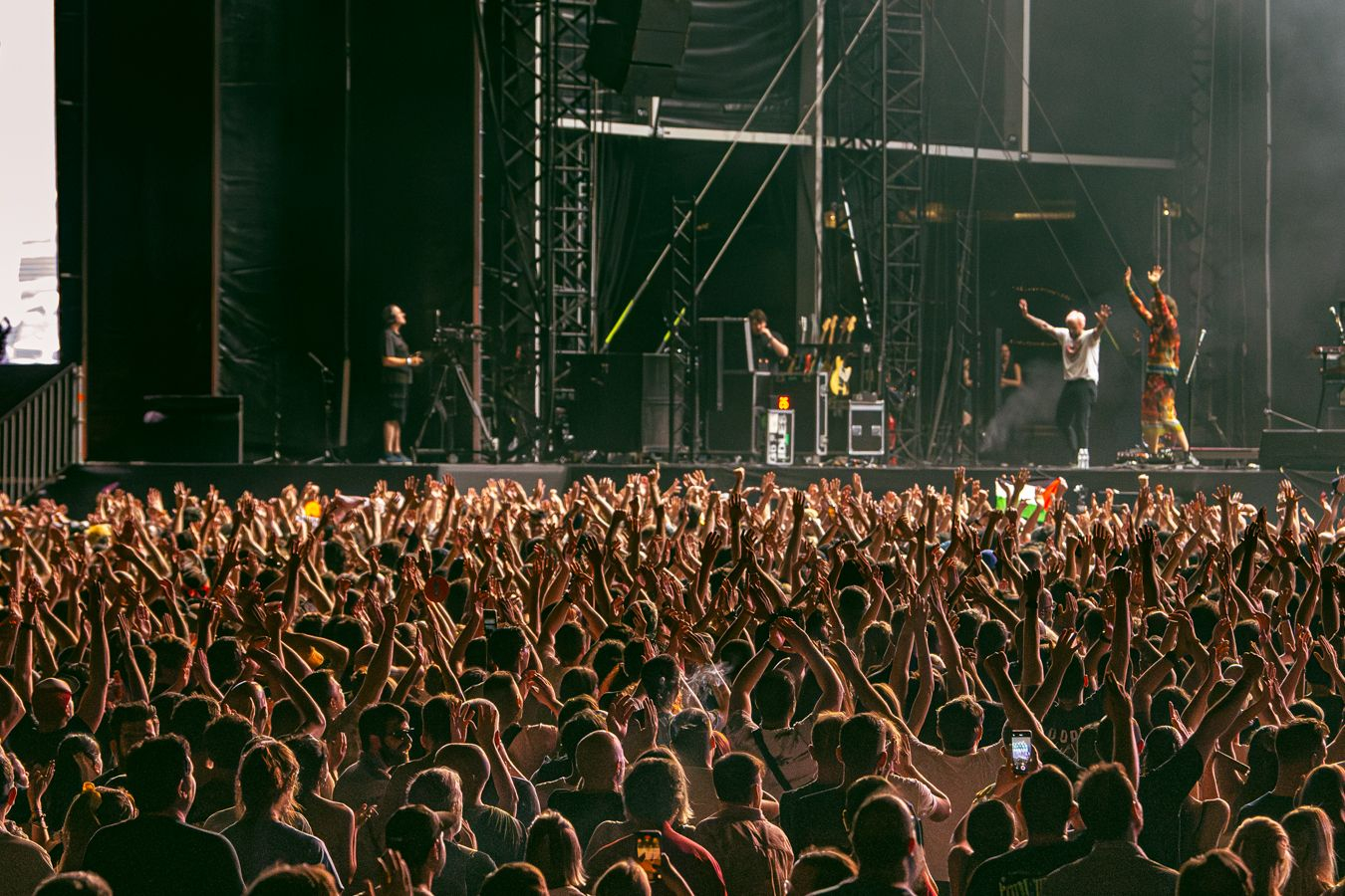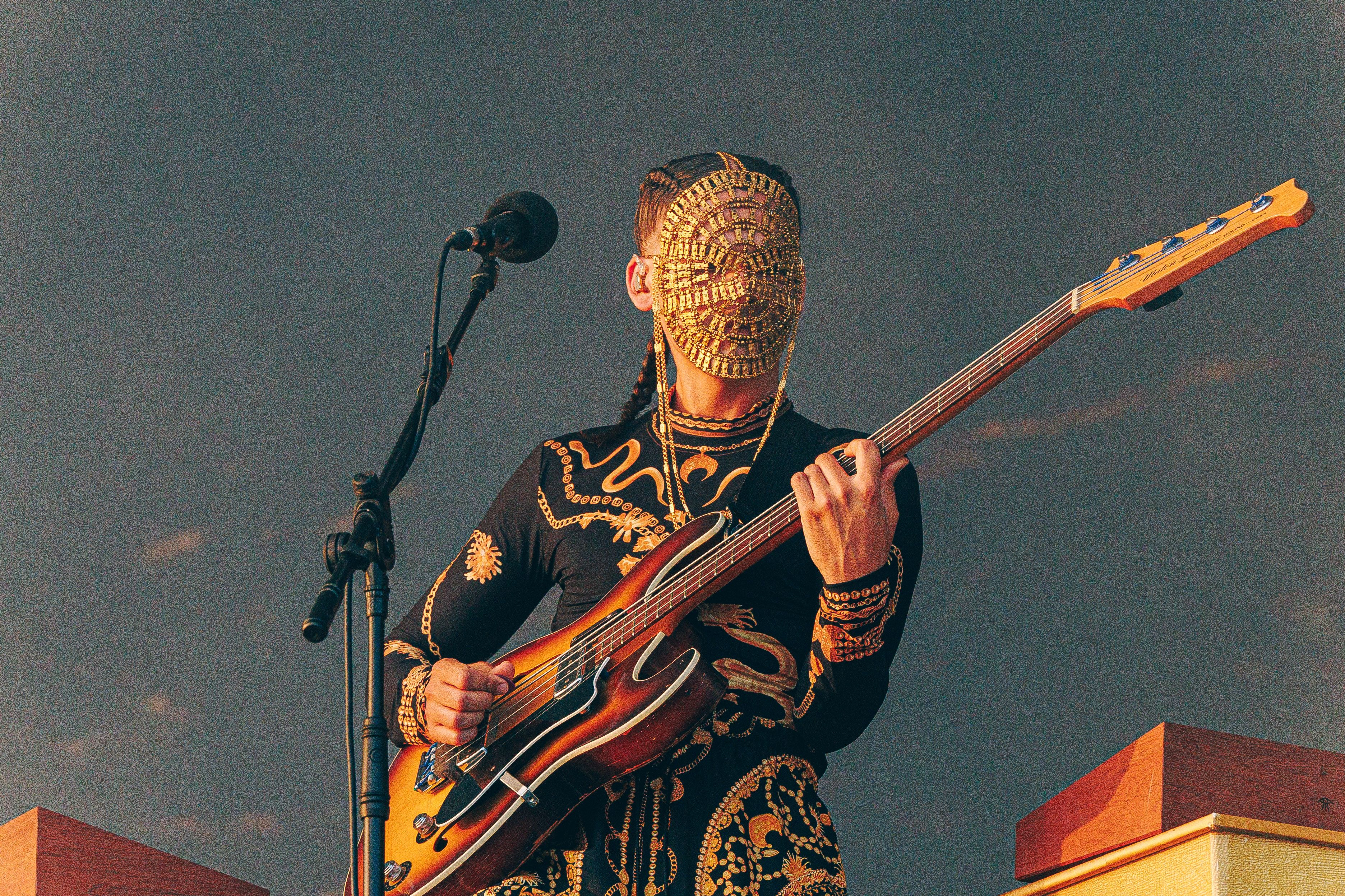 Η κινηματογραφική αύρα των Glass Beams – που άνετα θα μπορούσε να ντύσει ένα sequel του “Dune” – και ο ηλεκτρισμένος αισθησιασμός τους μάς συνεπήραν σταδιακά, μέχρι κι ο ήλιος να μαλακώσει. Από τη στιγμή που ανέβηκαν στη σκηνή, ένιωθες πως θα μπορούσαν να παίζουν… στους αιώνες. Το ηχητικό τους τοπίο κινήθηκε εκεί όπου ο Ravi Shankar συναντά τους Khruangbin: μια μίξη από jam rock επιρροές της Μέσης Ανατολής και περίτεχνα, αραχνοΰφαντα layers ορχηστρικής ψυχεδέλειας. Και, φυσικά, οι χαρακτηριστικές τους μάσκες – χάντρινες, μυστηριώδεις, τελετουργικές – απογείωσαν την αίσθηση του μυστηρίου.