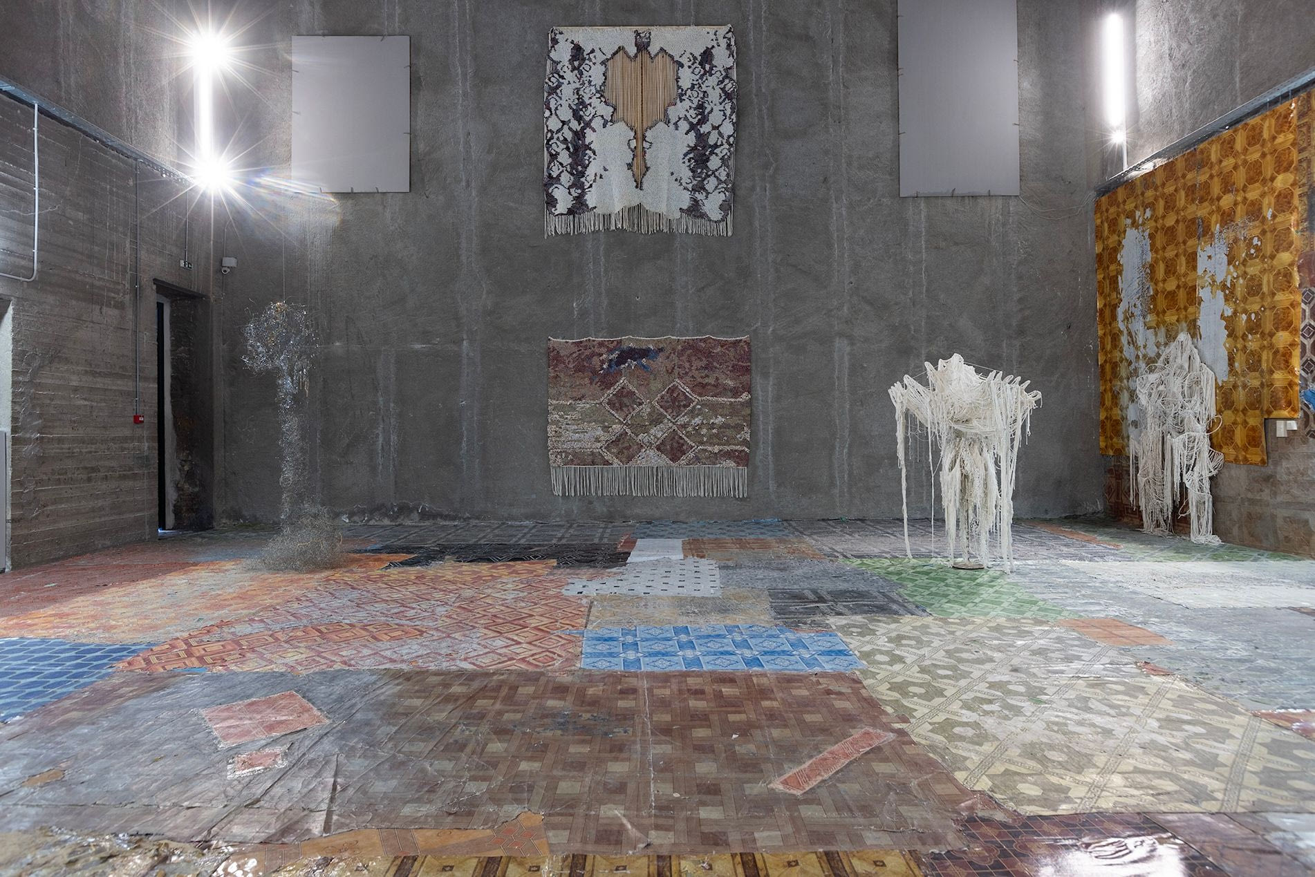 Στο επόμενο δωμάτιο, ο Νοτιοαφρικανός Igshaan Adams δημιουργεί ένα σύμπλεγμα με παλιότερα έργα του και μια νέα ανάθεση, συνδυάζοντας χειροποίητες υφαντές εγκαταστάσεις με περφόρμανς, η οποία θα εξελίσσεται κατά τη διάρκεια της έκθεσης. Η έκθεση συγκεντρώνει μία επιλογή από παλαιότερα έργα του και μία νέα εντυπωσιακή ανάθεση, η οποία εξελίσσεται κατά τη διάρκεια της έκθεσης ενεργοποιώντας τον εκθεσιακό χώρο. Εμείς γίναμε μάρτυρες αυτής της “ζωντανής” διαδικασίας και είχαμε την τύχη να δούμε την τεχνική και τη μέθοδο εργασίας του.