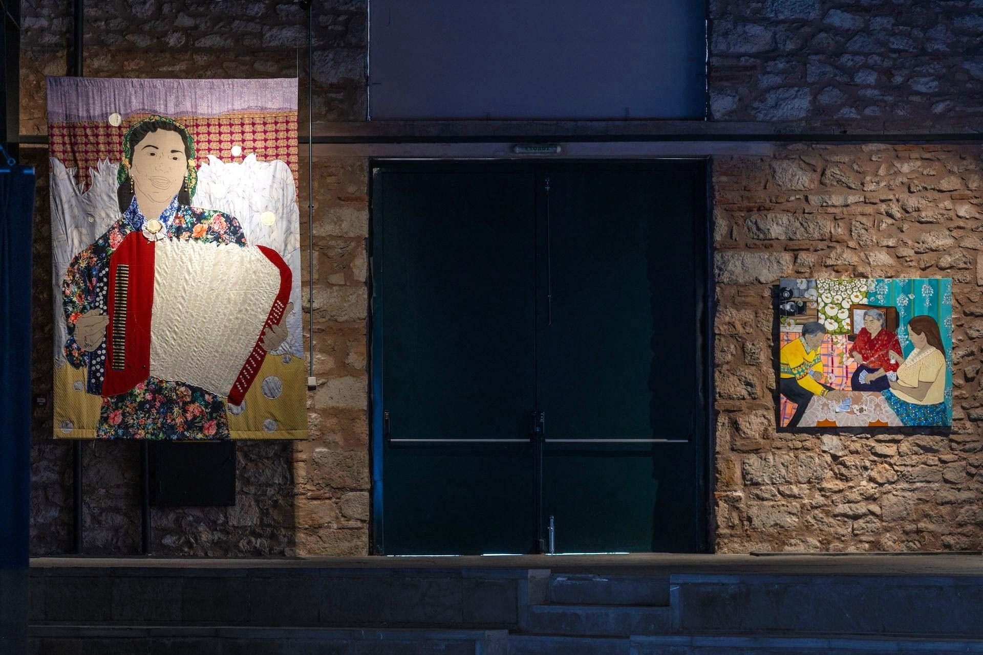 Εν συνεχεία, τα υφασμάτινα κολάζ της Πολωνέζας Małgorzata Mirga-Tas αντλούν από τη Ρομά καταγωγή της και την πλούσια πολιτιστική κληρονομιά της κοινότητάς της. Το γλυπτό της Καλλιόπης Λεμού, The Necklace, αναφέρεται στην έμφυλη ισότητα. Eίναι μία βαριά αλυσίδα που βρίσκεται στο έδαφος. Οι κρίκοι της θυμίζουν δόκανο για αρκούδες. Όποια γυναίκα και να τους φορούσε θα τραυματιζόταν βαριά. Τέτοια ωστόσο εργαλεία εξακολουθούν να απαιτούνται και στον σύγχρονο κόσμο…