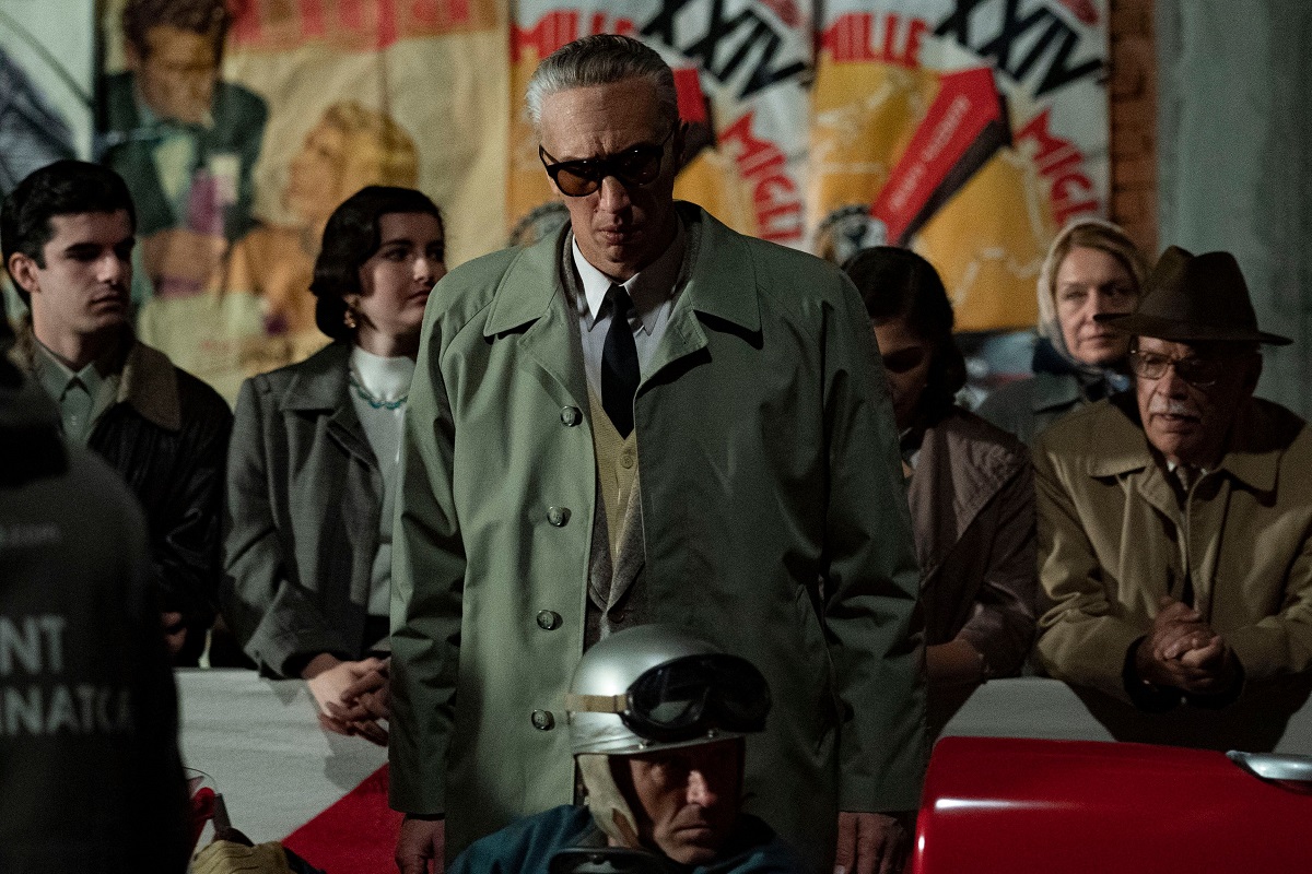 Γύρω από την μορφή του Έντσο Φεράρι, η ταινία που κατασκευάζει ο Μαν πάνω στο σενάριο του Κένεντι Μάρτιν και με τη συμβολή του πολύπειρου (και πολυ-οσκαρούχου) μοντέρ Πιέτρο Σκάλια, έχει μια αληθινά περίεργη μη-ροή. Είναι γραμμική ως αφήγηση όμως διαρκώς αντιστέκεται σε κάθε απόπειρα να χτιστεί μομέντουμ, ακόμα κι όταν παραδιδόμαστε σε σκηνές αγώνων άγριου λυρισμού, λουσμένων σε ορμή και ουρλιαχτό. (Η διεύθυνση φωτογραφίας είναι του Έρικ Μέσερσμιντ, των Mank και Mindhunter.) Ακόμα και τότε λοιπόν, ο αγώνας καθαρά ως αγώνας δεν αποτυπώνεται ποτέ με αδιάκοπο, αγνό τρόπο – πάντα στην άκρη του κάδρου, ή σε κάποιο παράλληλο μοντάζ, ή στην άκρη της σκέψης, βρίσκονται οι λοιπές διαστάσεις αυτής ιστορίας, δηλαδή η κατεστραμμένη οικογενειακή ζωή του Έντσο και το εμπορικό αδιέξοδο του εργοστασίου του.