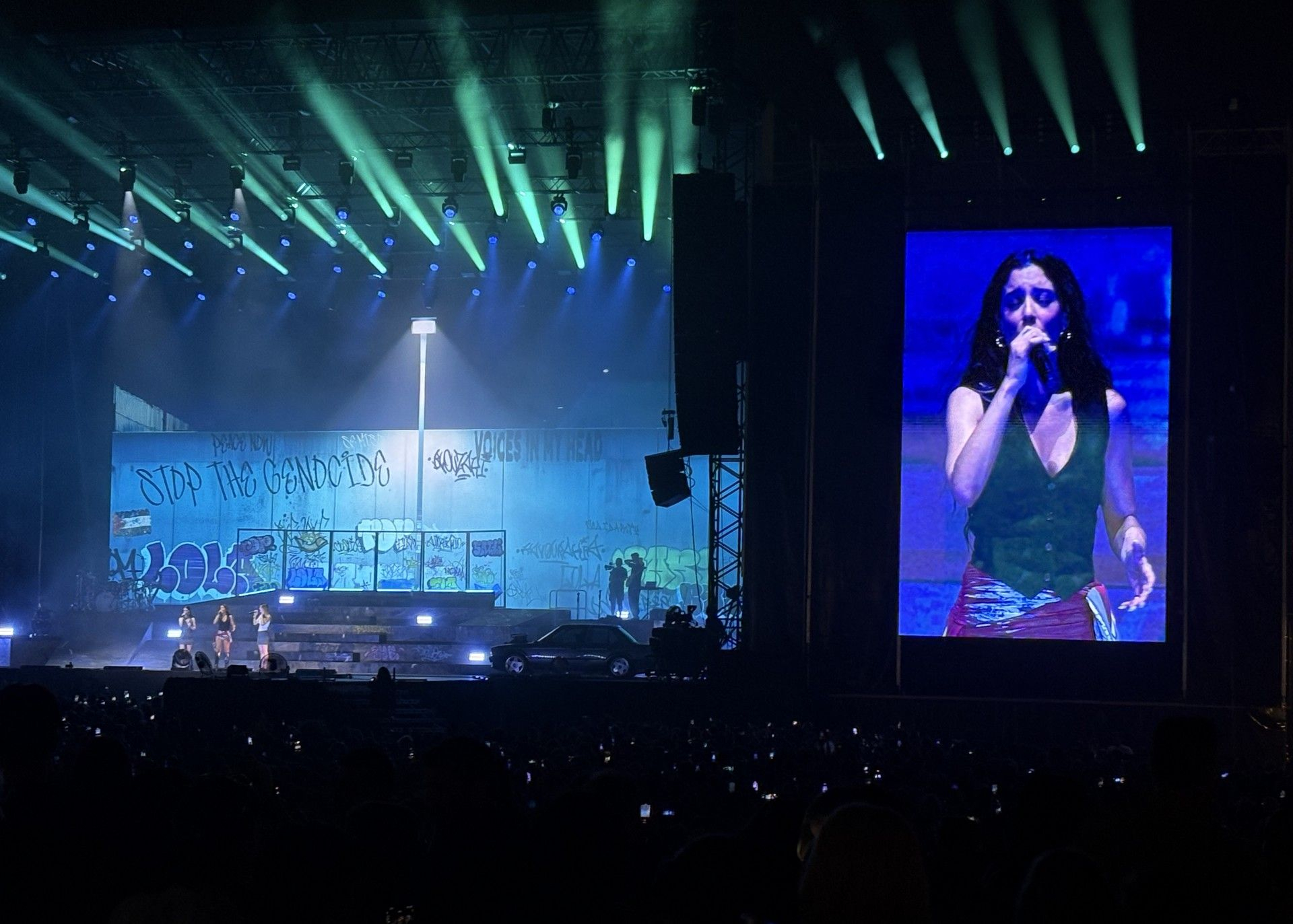Κατά τη διάρκεια της συναυλίας, στην κεντρική LED οθόνη πίσω από τη σκηνή προβλήθηκαν η σημαία της Παλαιστίνης μαζί με τα μηνύματα “Stop The Genocide” και “Peace”, ως μία κραυγή διαμαρτυρίας απέναντι στη συνεχιζόμενη αιματοχυσία, στις μαζικές απώλειες αμάχων και στην ανθρωπιστική καταστροφή που συντελείται εδώ και 20 μήνες στην περιοχή.