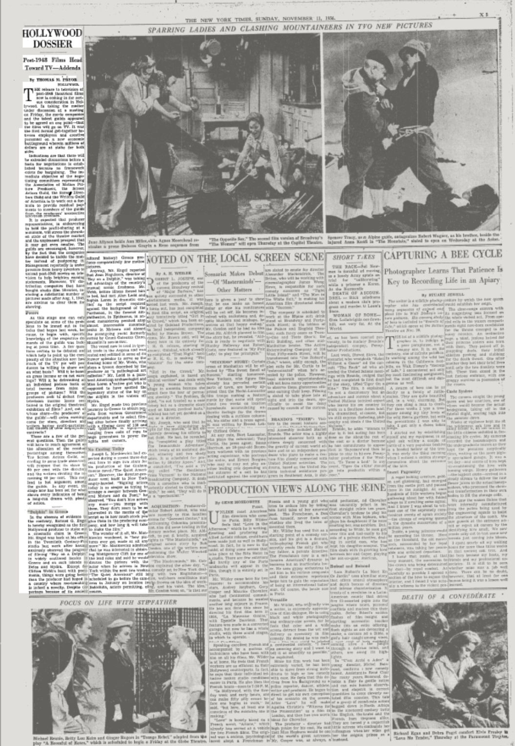 Σε άρθρο με μικρές ειδήσεις από τον κινηματογραφικό κόσμο, από φύλλο του Νοέμβρη του ‘56, οι New York Times μεταδίδουν το ρεπορτάζ για την απόφαση του παραγωγού Σάμιουελ Ένγκελ να τοποθετήσει την παραγωγή του νέου του φιλμ στην χώρα. Ο τόνος του άρθρου είναι φανταστικός – ο ρεπόρτερ (Τόμας Πράιορ είναι η υπογραφή) φαίνεται ακόμα έκπληκτος από το γεγονός ότι η ταινία κατάφερε να γυριστεί σε μια χώρα σαν την Ελλάδα!