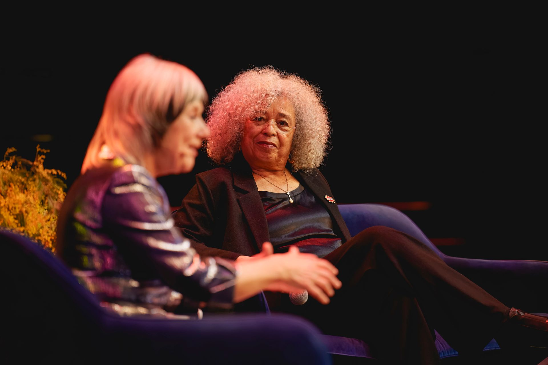 Η Αμερικανίδα ακτιβίστρια, ακαδημαϊκός και συγγραφέας Angela Davis – σήμερα ετών 84 – είναι γνωστή για τη δράση της στη δεκαετία του 1960 με τους Μαύρους Πάνθηρες και το κίνημα για τα ανθρώπινα δικαιώματα. Κατηγορήθηκε για συνωμοσία λόγω αγοράς όπλων που χρησιμοποιήθηκαν σε επίθεση, φυλακίστηκε αλλά αθωώθηκε. Διετέλεσε καθηγήτρια στο Πανεπιστήμιο της Καλιφόρνιας στο Σάντα Κρουζ, με έρευνες σε φεμινισμό, αφροαμερικανικές σπουδές και την κοινωνική δικαιοσύνη. Ως μέλος του Κομμουνιστικού Κόμματος ΗΠΑ, ο Ρ. Ρήγκαν επιχείρησε να της απαγορεύσει τη διδασκαλία. Στήριξε τις κυβερνήσεις του Ανατολικού Μπλοκ και υπήρξε υποψήφια αντιπρόεδρος τις δεκαετίες του 1980, αποχωρώντας από το κόμμα το 1991. Μιλάμε για ένα πρόσωπο θρύλο και φοιτήτρια του τεράστιου διανοητή Χέρμπερτ Μαρκούζε.