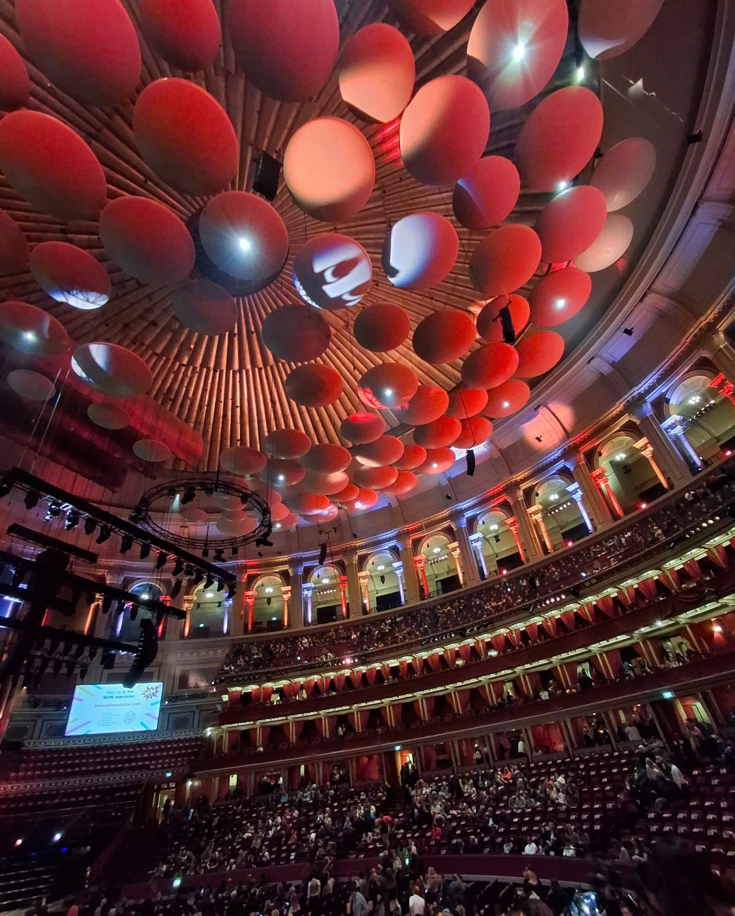 Η πρώτη φορά στο Royal Albert Hall έχει ένα δέος γιατί δεν μπορείς παρά να σκεφτείς ότι πατάς σε “ιερό έδαφος”. Ένα από τα πιο θρυλικά venues στον κόσμο, εμβληματικό στολίδι της πόλης, που έχει φιλοξενήσει τα μεγαλύτερα ονόματα της μουσικής και των τεχνών. Στον χαρακτηριστικό κυκλικό του διάδρομο φιγουράρουν φωτογραφίες μουσικών ειδώλων που έχουν χαρίσει στο κοινό του Hall αξέχαστες εμφανίσεις.