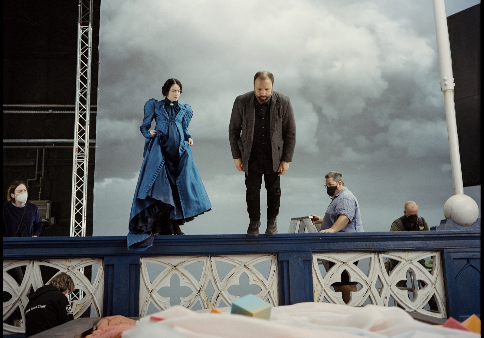 …την περιπλάνηση στα σκηνικά: Το αγαπημένο μου κομμάτι ήταν να περπατάω σε αυτά τα σετ που ήταν τόσο φιλόδοξα. Προσπαθούσαμε να δείξουμε έναν ολόκληρο κόσμο. Με γέμιζε έμπνευση το να περπατάω σε αυτά τα μέρη που χτίσαμε. Και προσπαθούσα όσο μπορώ να αφήσω τους ηθοποιούν να τα κατοικούν και να μη νιώθουν περιορισμένοι ως προς το πού πρέπει να κάνουν το κάθε πράγμα. Ήταν πολύ δημιουργικό αυτό. Απλώς το να πηγαίνω εκεί και να ανακαλύπτουμε πράγματα εκεί στο σετ, πώς θα κάνουμε μια σκηνή και πώς θα παίξει η σκηνή χωρίς να προσπαθούμε να στριμώξουμε τα πάντα σε κάτι που είχα φανταστεί νωρίτερα.