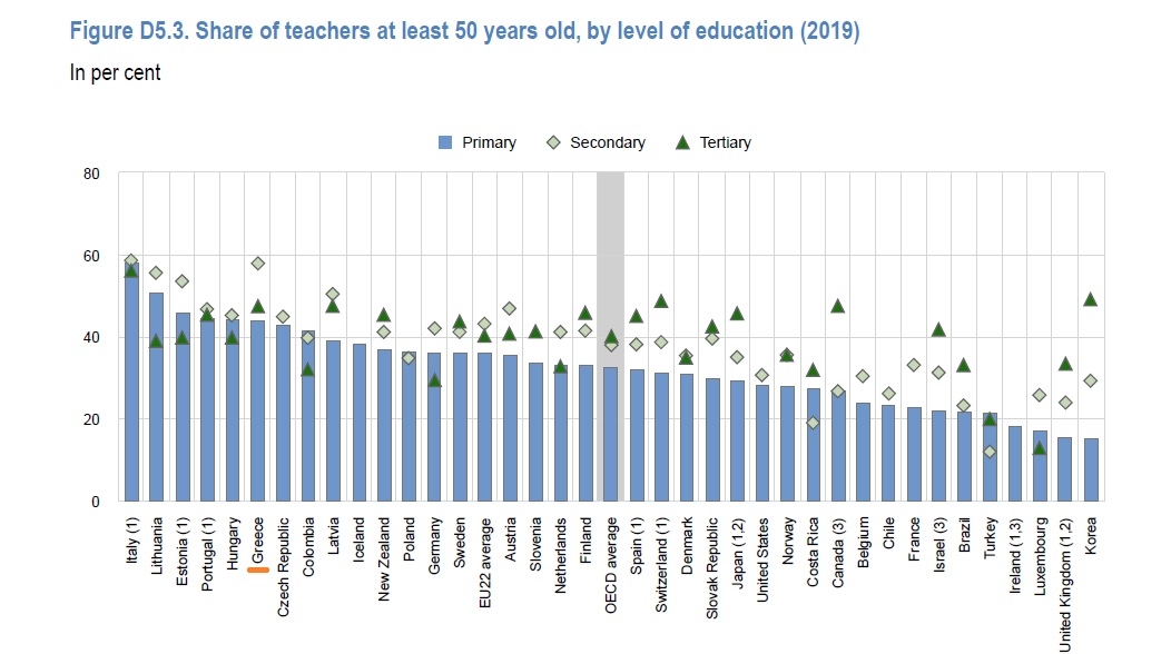 Η Ελλάδα έχει από τα υψηλότερα ποσοστά ηλικιωμένων καθηγητών στην Ευρώπη