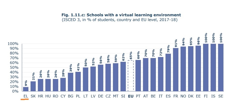 Πριν την αρχή της πανδημίας, ένας ποσοστό εκπαιδευτικών που υπολογίζεται σε 20%-25% είχε εκπαιδευτεί στη χρήση τεχνολογίας εντός και εκτός τάξης. Ακόμα και για αυτούς όμως, ήταν σπάνια η έμπρακτη αξιοποίηση της, καθώς το ελληνικό εκπαιδευτικό σύστημα δεν ευνοεί τη χρήση ψηφιακών μέσων, όπως λέει ο κ. Κουτσογιαννης: «Δεν είναι μέρος της καθημερινότητας του σχολείου, το οποίο στηρίζεται πολύ στο σχολικό εγχειρίδιο. Οι επιμορφώσεις είναι ευκαιριακές και δεν ταιριάζουν με τα άλλα στοιχεία. Ο εκπαιδευτικός μπορεί να έχει κάνει επιμόρφωση, αλλά το σχολείο του δεν ζητάει κάτι αντίστοιχο». Πριν την πανδημία, μόλις ένα στα δέκα Ελληνικά σχολεία παρείχε υπηρεσίες ψηφιακού μαθησιακού περιβάλλοντος, το χαμηλότερο ποσοστό στην Ευρώπη.